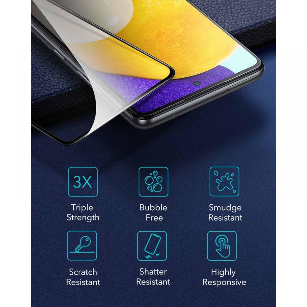 ESR Screen Shield 3D Full Cover Tempered Glass 2 Pack - 2 броя калени стъклени защитни покрития за целия дисплей на Samsung Galaxy A52, Galaxy A52s (черен-прозрачен)
