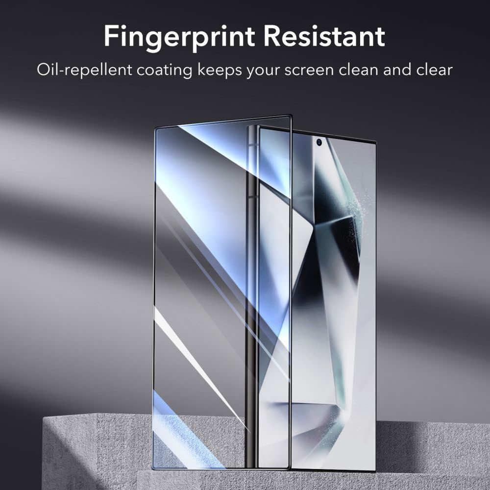 ESR Screen Shield Tempered Glass and Camera Glass Protection Set - комплект 2 броя стъклени защитни покрития за дисплея и 1 брой предпазни стъклени лещи за камерата на Samsung Galaxy S24 Ultra (черен-прозрачен)