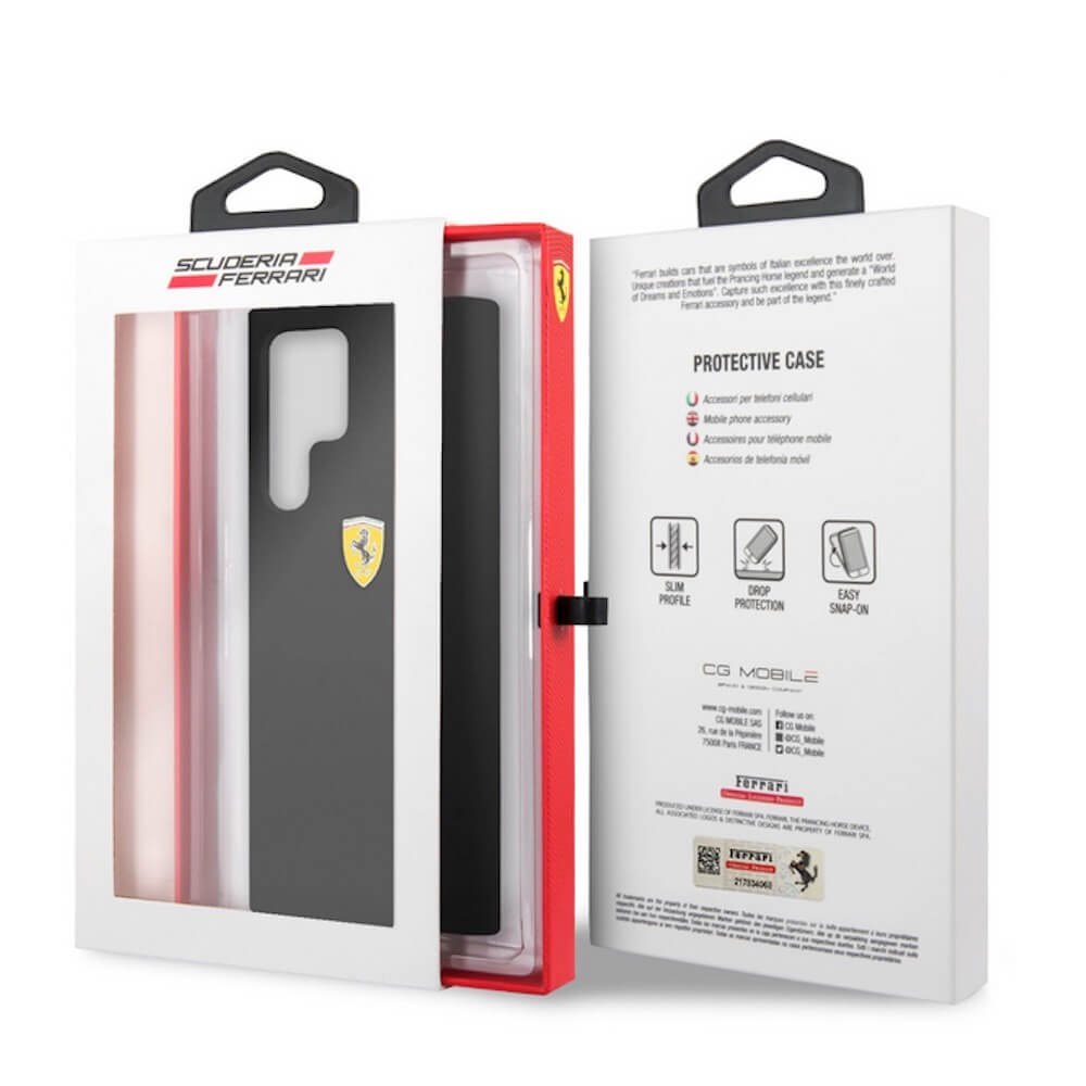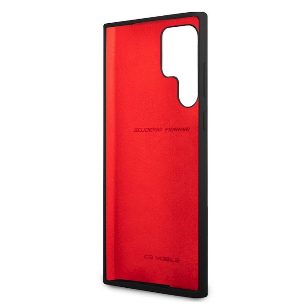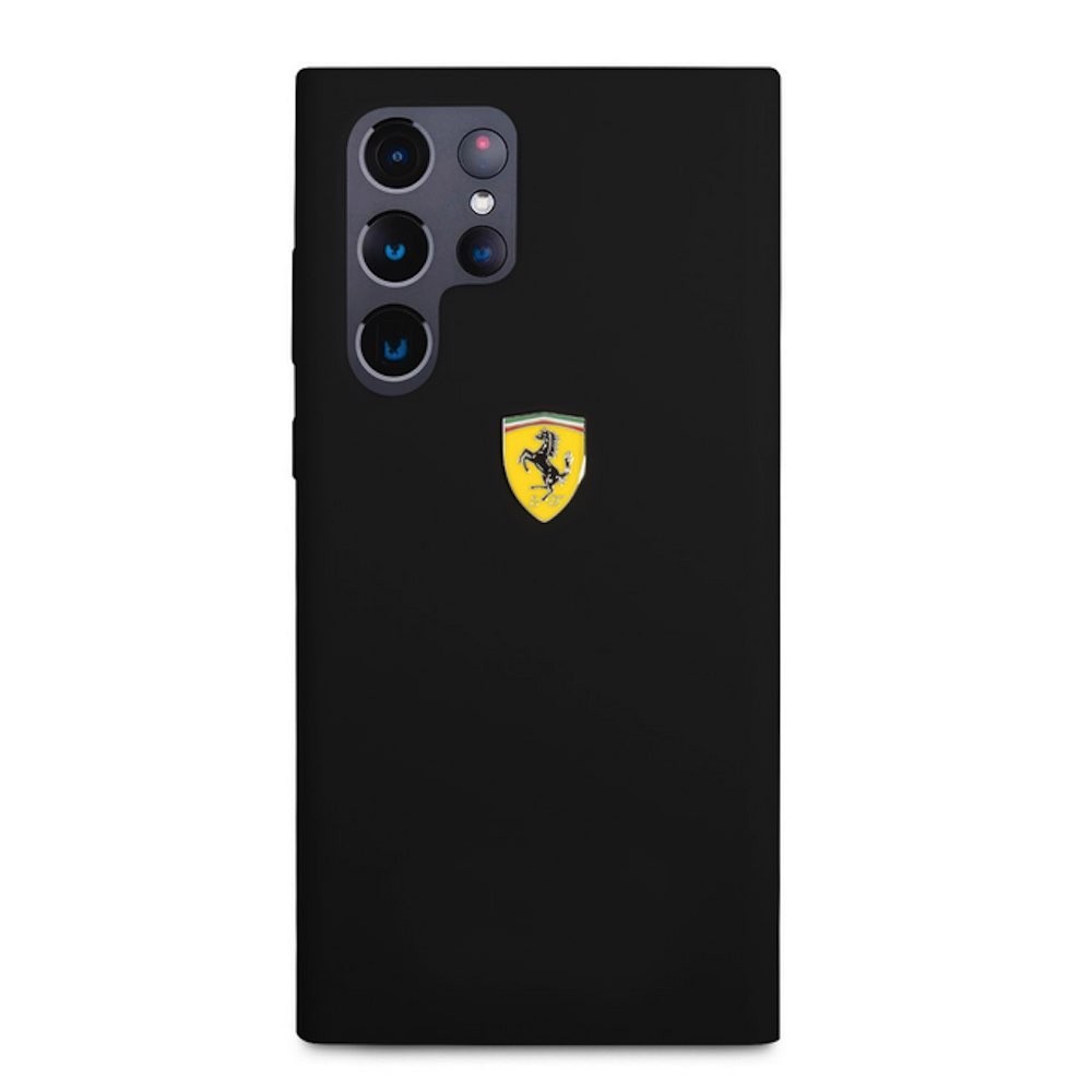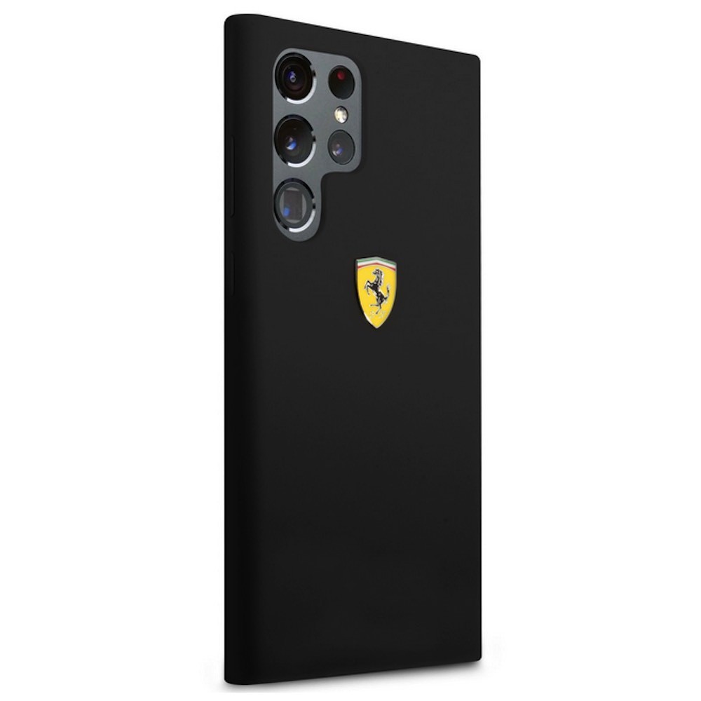 Ferrari Liquid Silicone Metal Logo Case - дизайнерски силиконов (TPU) кейс за Samsung Galaxy S22 Ultra (черен)