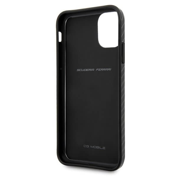 Ferrari On Track Carbon Effect Hard Case - поликарбонатов кейс с карбоново покритие за iPhone 11 Pro Max (черен)