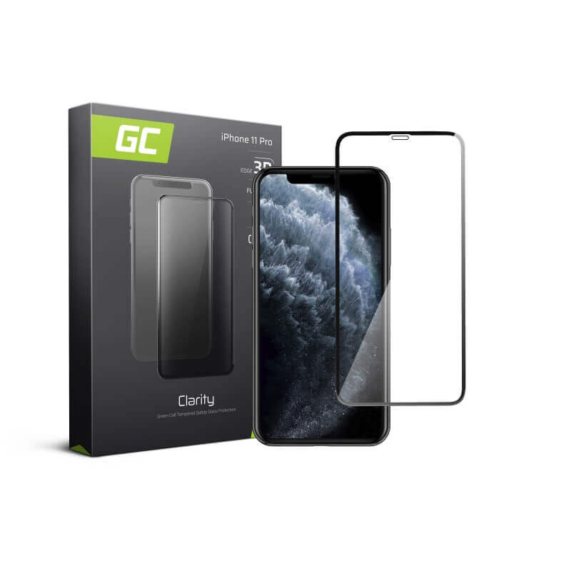 Green Cell Clarity 3D Full Cover Glass - калено стъклено защитно покритие за целия дисплей на iPhone 11 Pro, iPhone XS, iPhone X (прозрачен-черен)