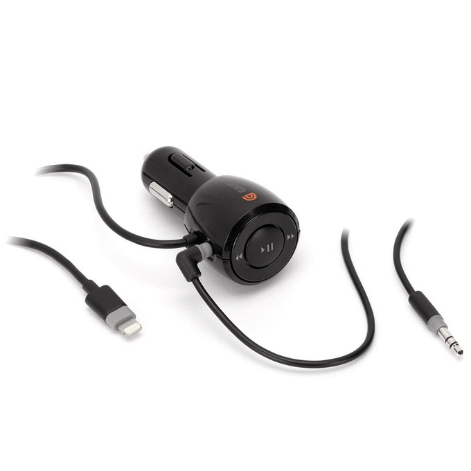 Griffin iTrip Aux cable and Lightning Connector - зарядно за кола с контролери, Aux кабел и Lightning кабел за iPhone, iPad, iPod (черен)