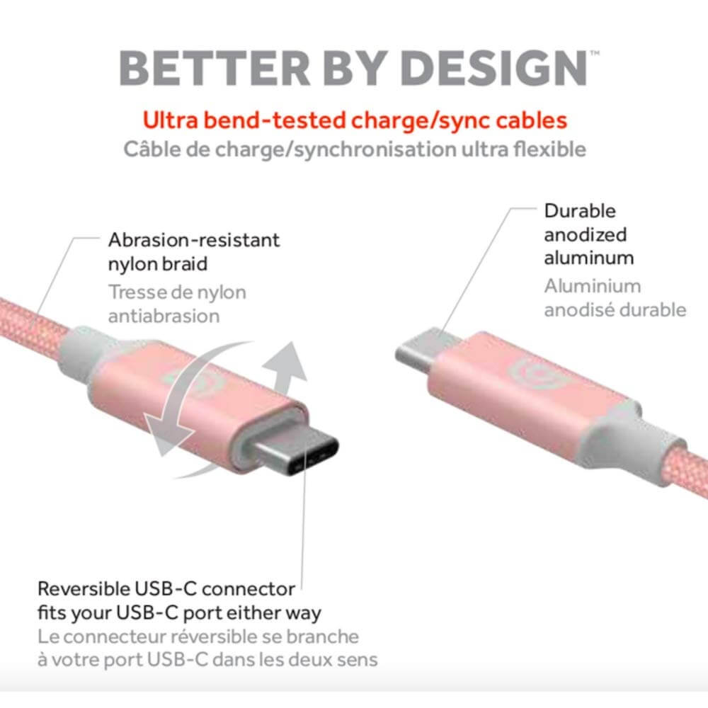 Griffin Premium USB-C to USB-C Cable - USB-C към USB-C кабел за устройства с USB-C порт (180 см) (розово злато)
