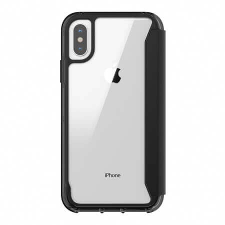 Griffin Survivor Clear Wallet - кожен калъф, тип портфейл с висока защита за iPhone XS, iPhone X (черен-прозрачен)