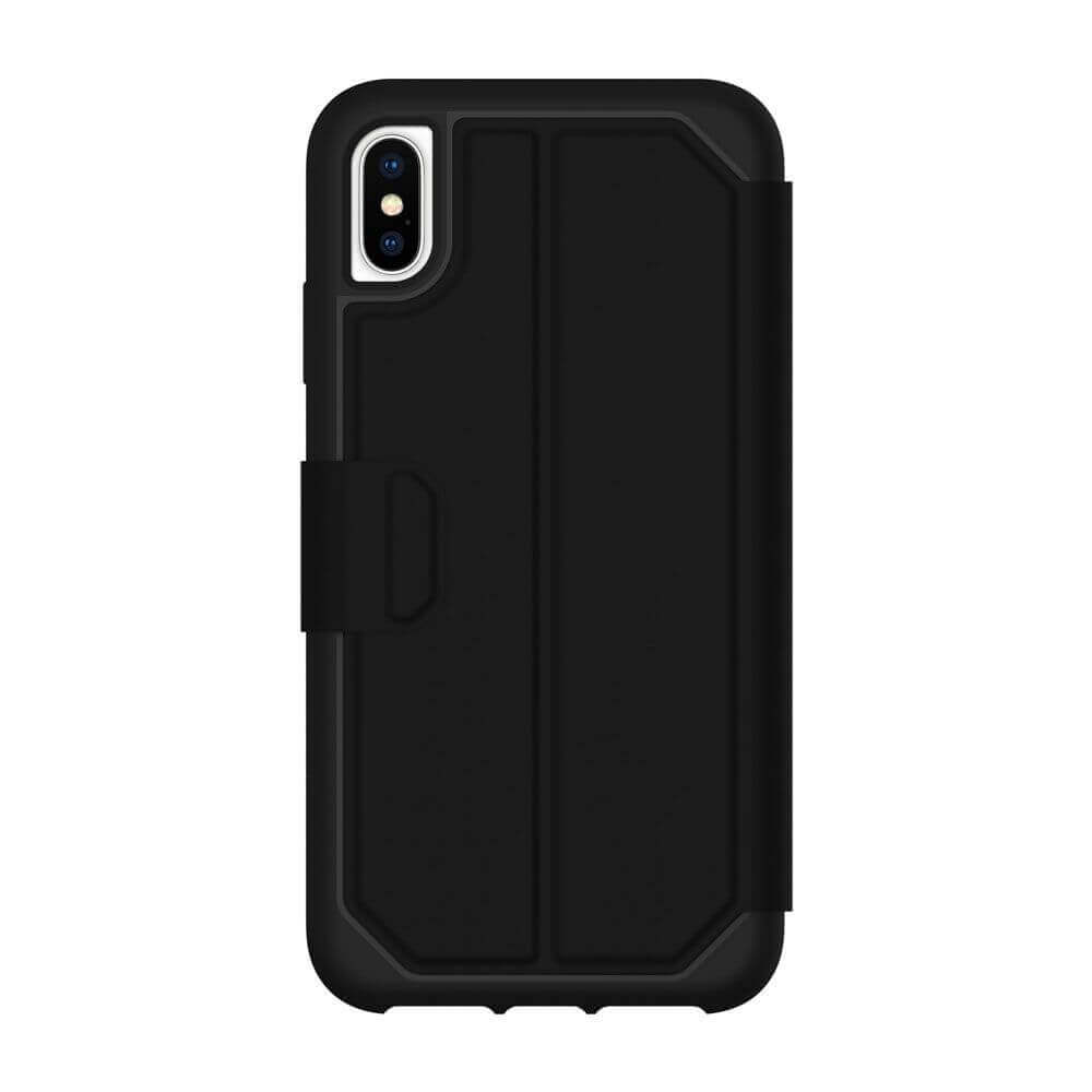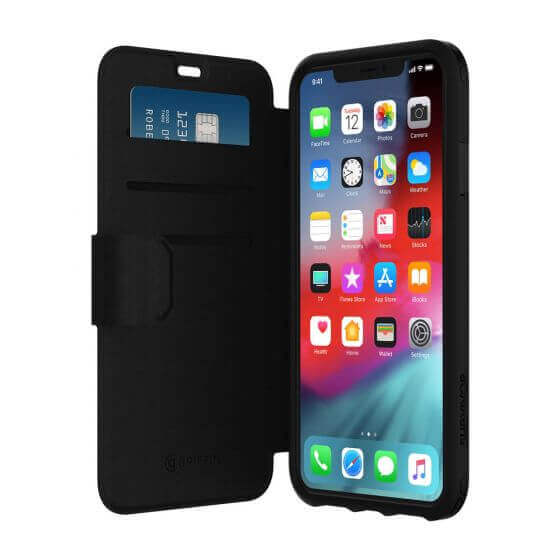 Griffin Survivor Strong Wallet - удароустойчив хибриден кожен калъф с отделение за карти за iPhone XS Max (черен-сив)