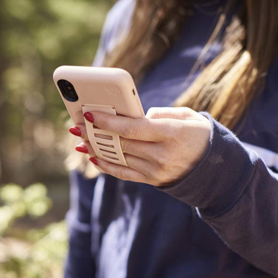- Лентата на гърба на кейса допринася за комфортa и предотвратяването на цялостно изпускане на телефона ви
