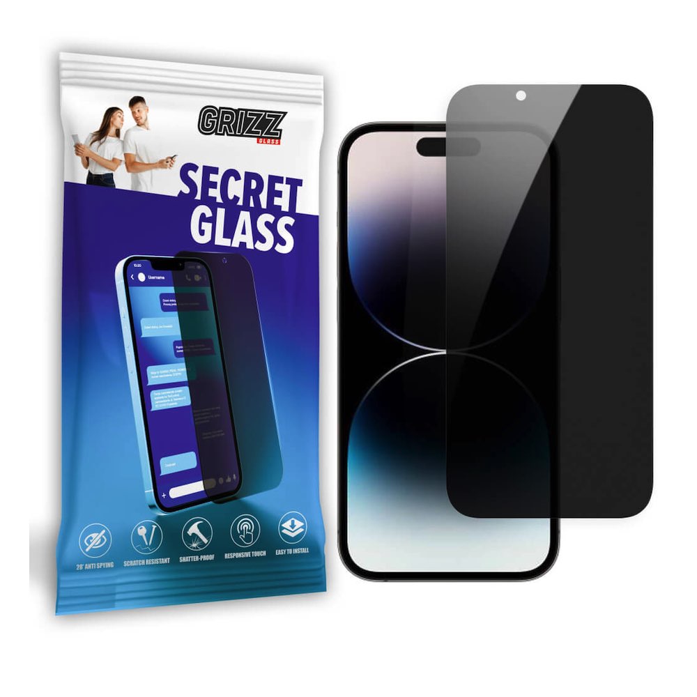 GrizzGlass SecretGlass Privacy Hybrid Screen Protector - хибридно защитно покритие с определен ъгъл на виждане за дисплея на iPhone 15 Pro (прозрачно)