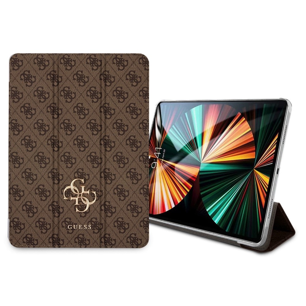 Guess 4G Folio Cover - дизайнерски кожен кейс и поставка за iPad Pro 11 M1 (2021), iPad Pro 11 (2020), iPad Pro 11 (2018) (кафяв)