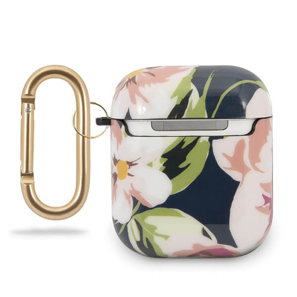 Guess Airpods Silicone Case Flower Collection No.3 - силиконов калъф с карабинер за Apple Airpods и Apple Airpods 2 (син)