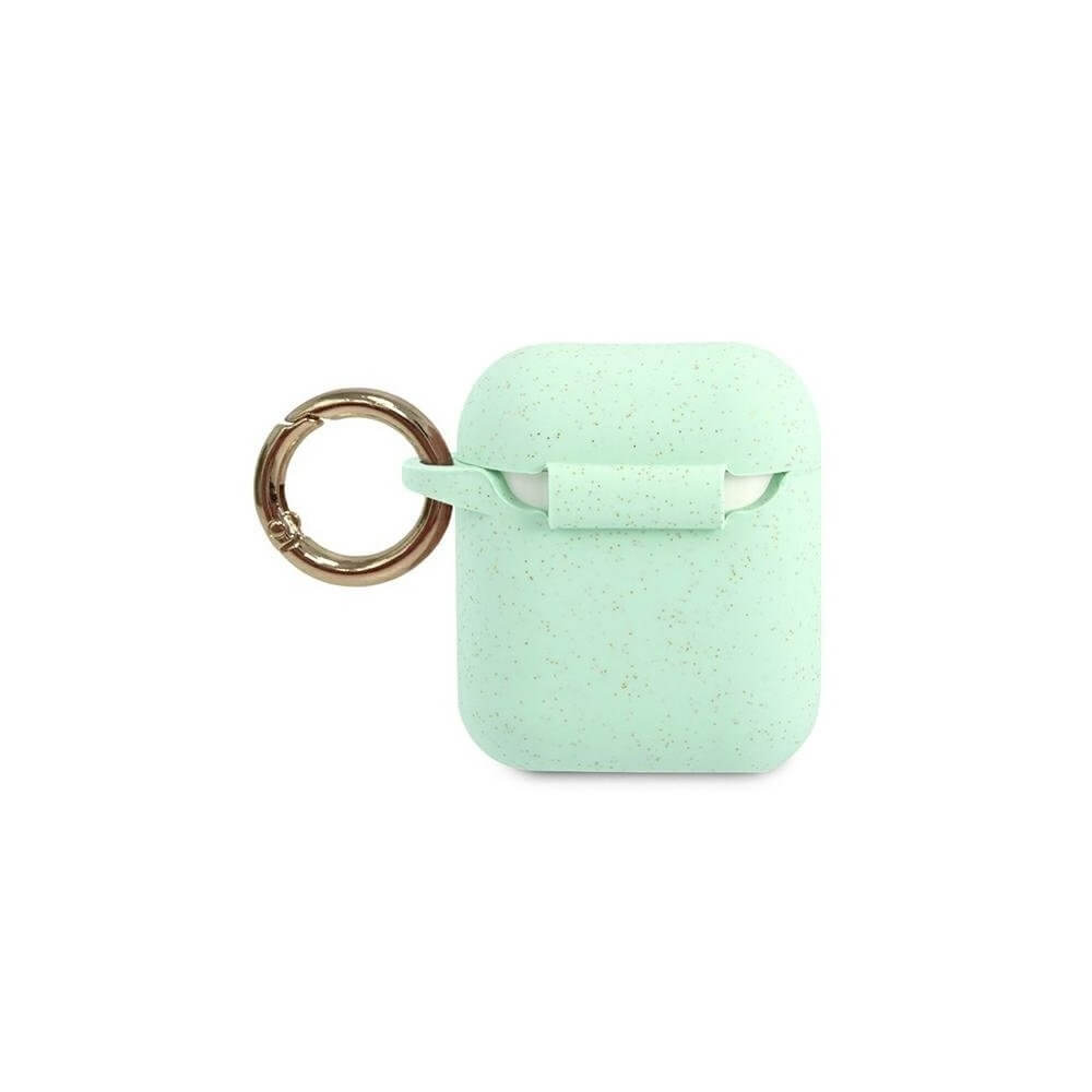 Guess Airpods Silicone Glitter Case - силиконов калъф с карабинер за Apple Airpods и Apple Airpods 2 (зелен)