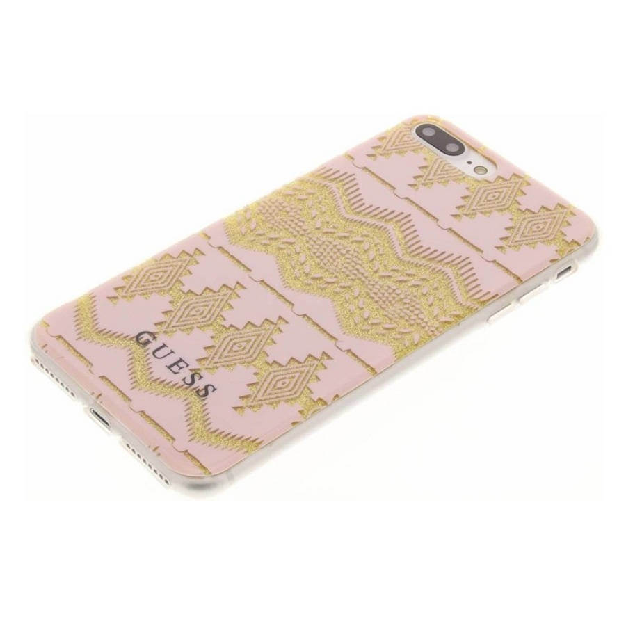 Guess Aztec Soft TPU Case - дизайнерски термополиуретанов кейс за iPhone 8 Plus, iPhone 7 Plus, iPhone 6S Plus, iPhone 6 Plus (прозрачен-златист)