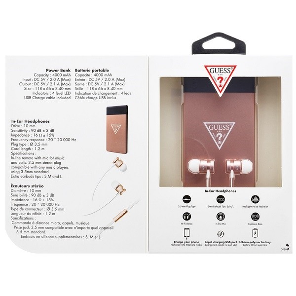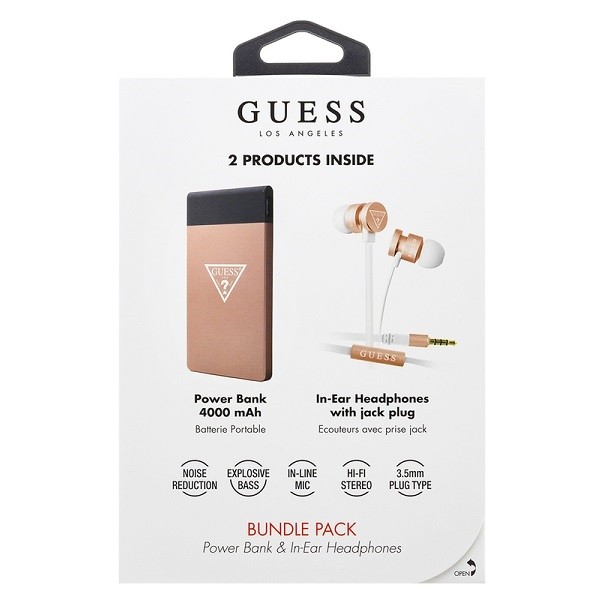 - 1 x Guess Bundle Power Bank - 1 x Guess In-Ear Headphones with Mic - 1 x microUSB кабел