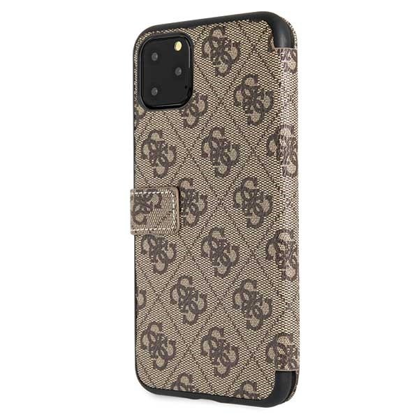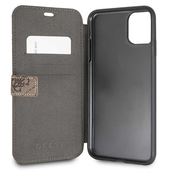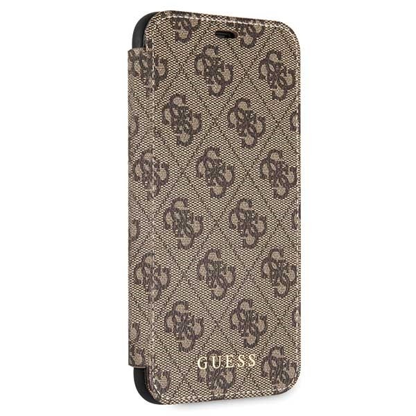 Guess Charms Collection Booktype Case - дизайнерски кожен калъф, тип портфейл за iPhone 12 mini (кафяв)