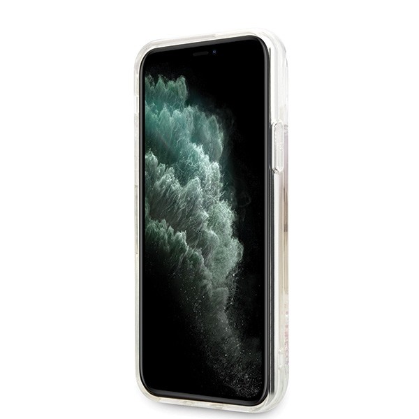 Guess Circle Liquid Glitter Hard Case - дизайнерски кейс с висока защита за iPhone 11 Pro Max (розов)