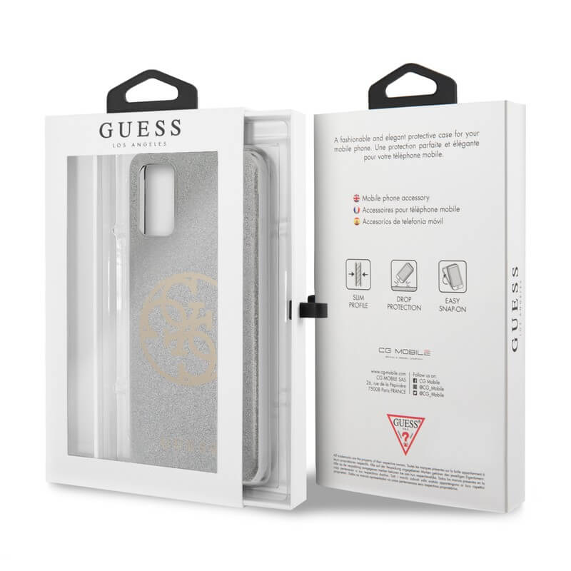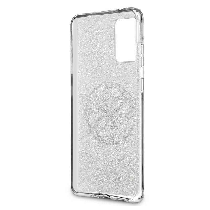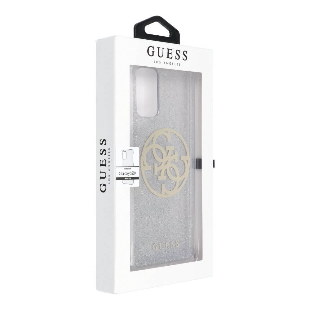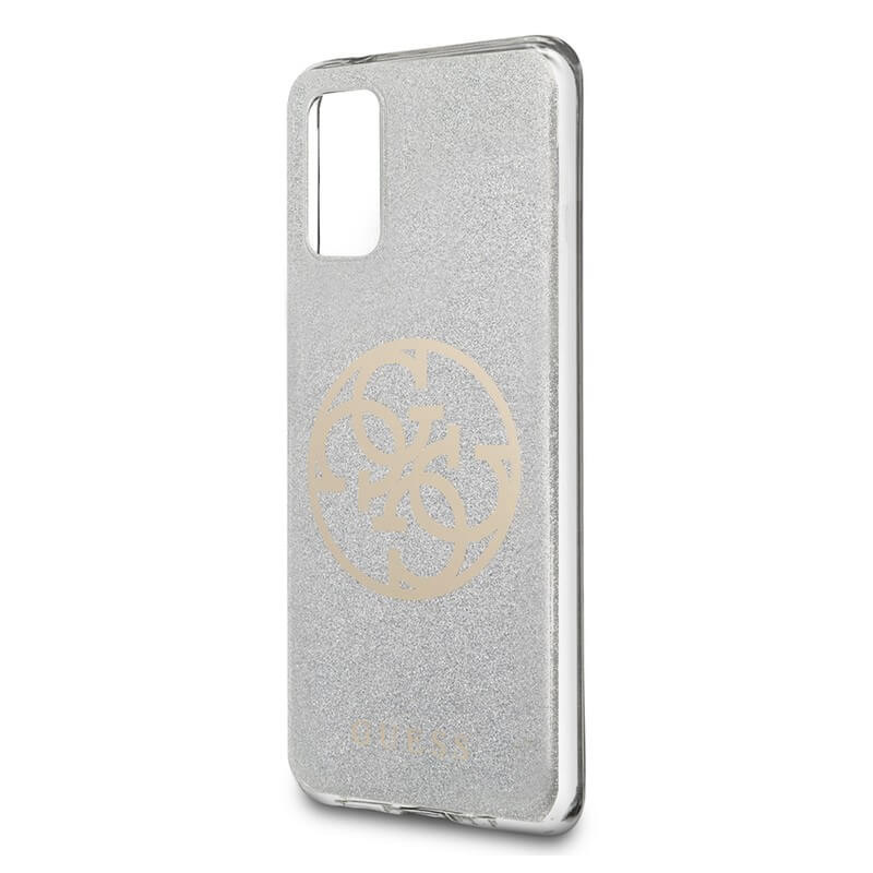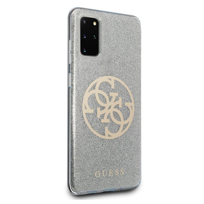 Guess Glitter 4G Circle Logo Case - дизайнерски кейс с висока защита за Samsung Galaxy S20 Plus (сив)