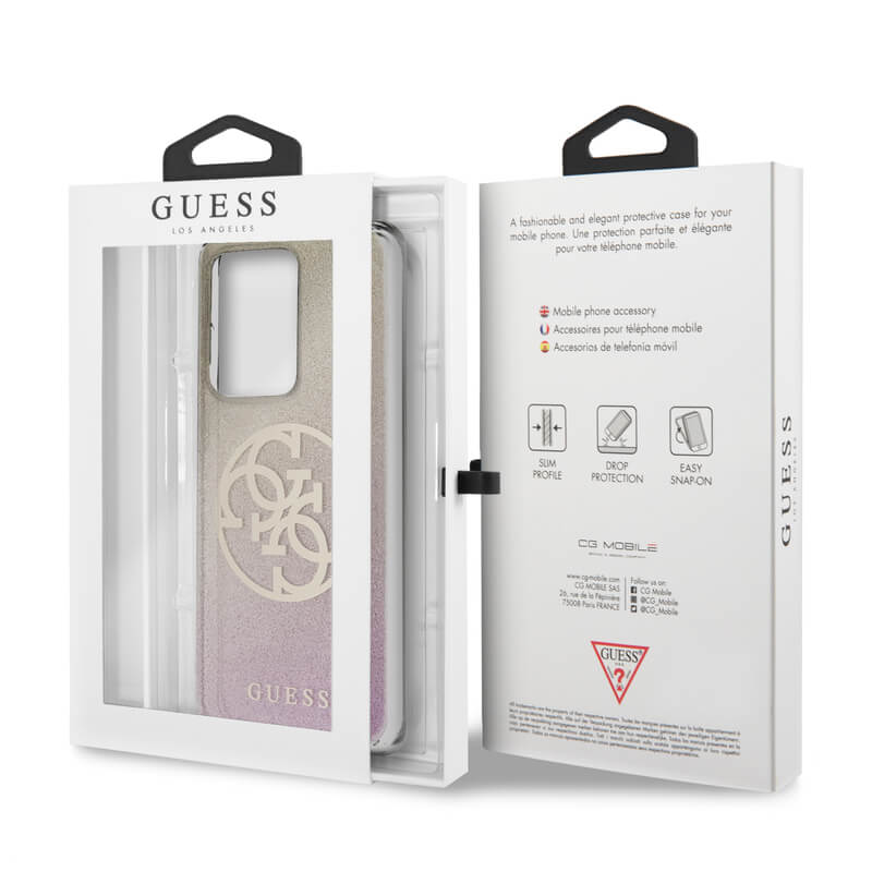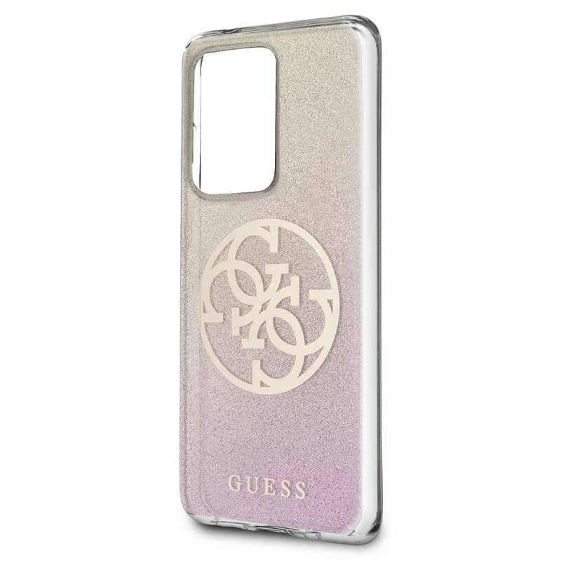 Guess Glitter 4G Circle Logo Case - дизайнерски кейс с висока защита за Samsung Galaxy S20 Ultra (розов)