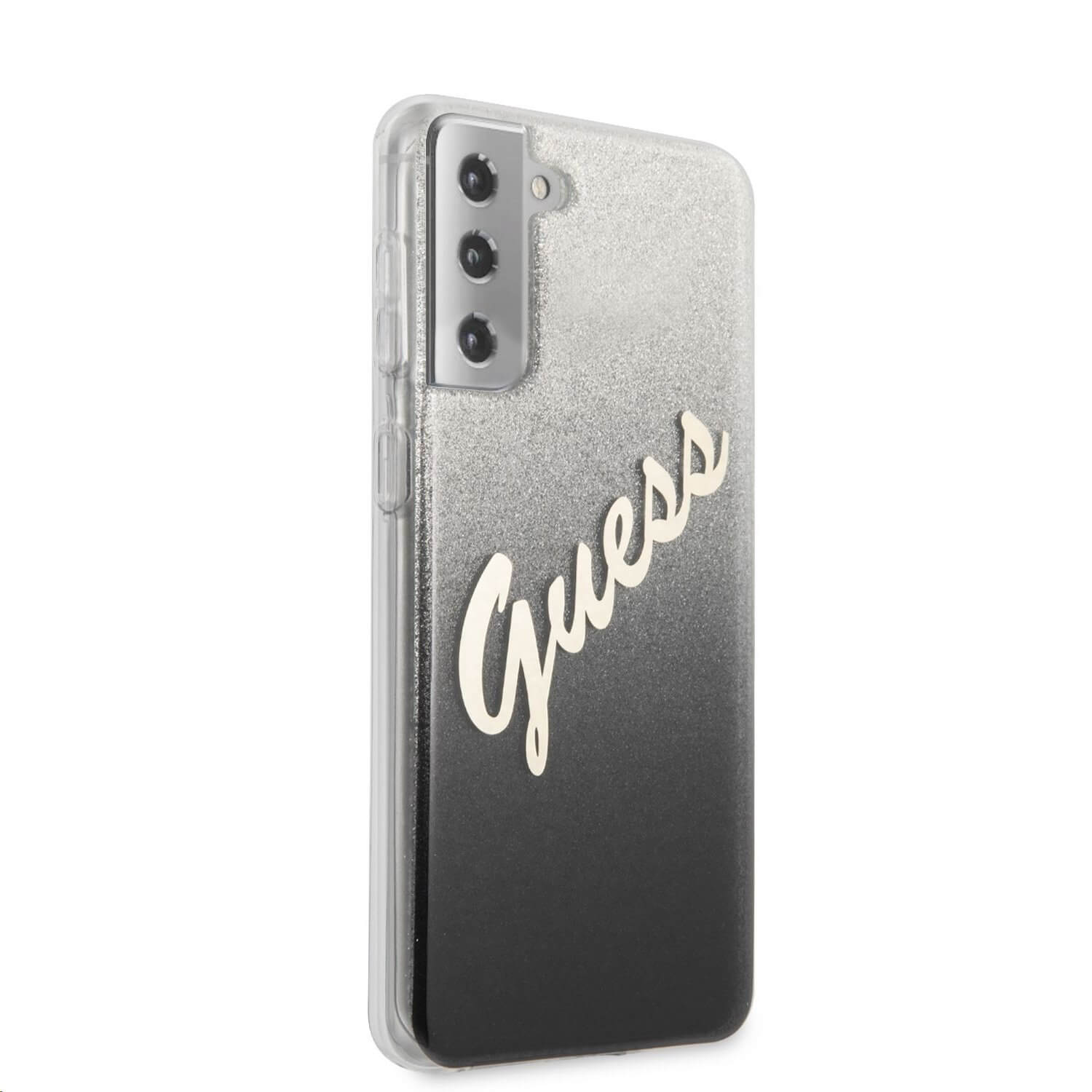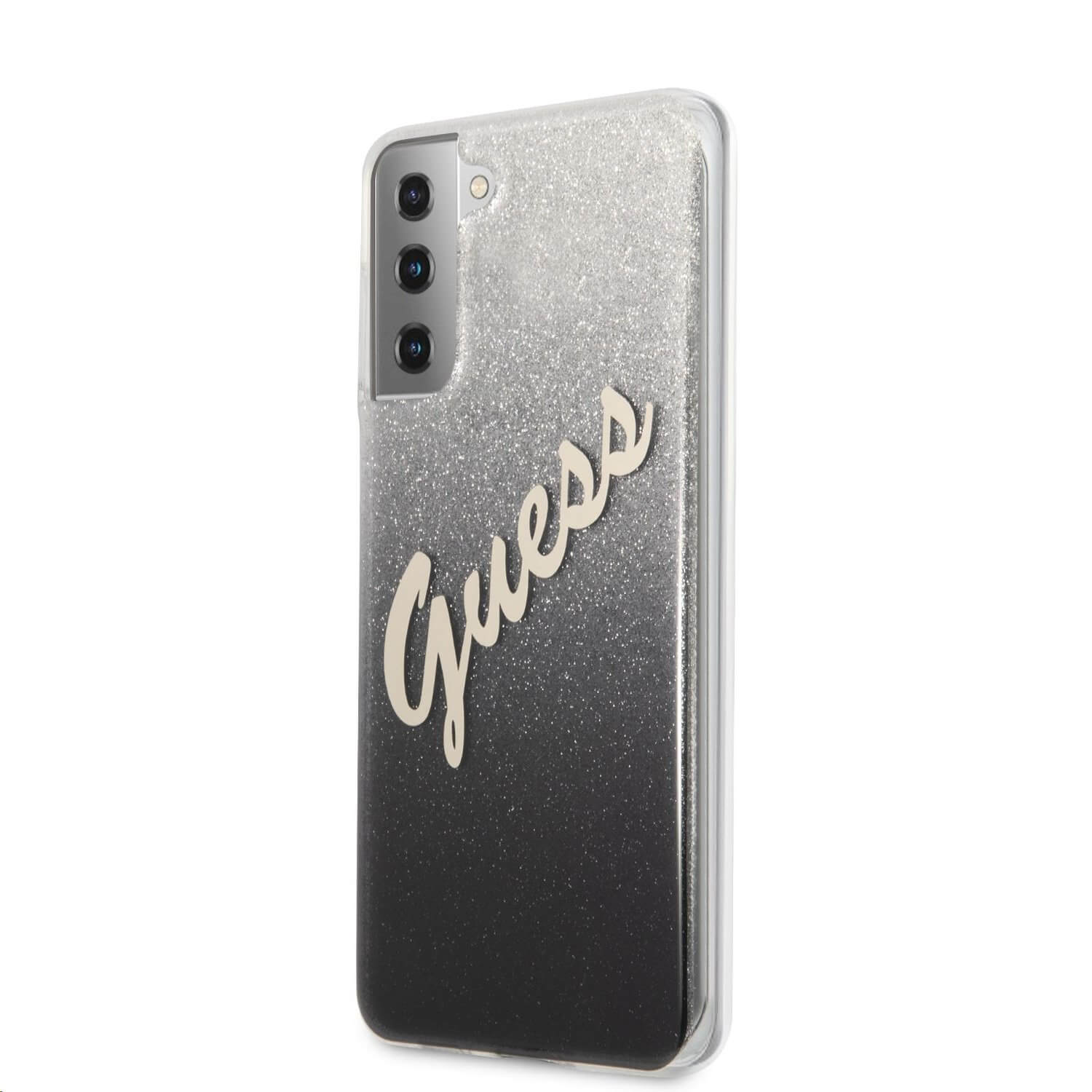 Guess Glitter Gradient Vintage Case - дизайнерски кейс с висока защита за Samsung Galaxy S21 Plus (сив)