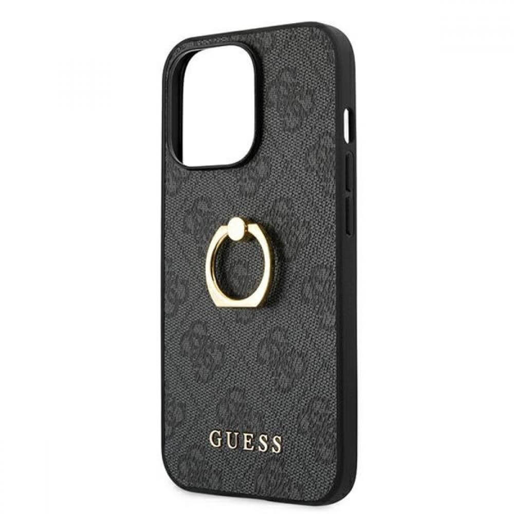 Guess Hard Case 4G With Ring Stand - дизайнерски кожен кейс с пръстен против изпускане за iPhone 13 Pro Max (черен)