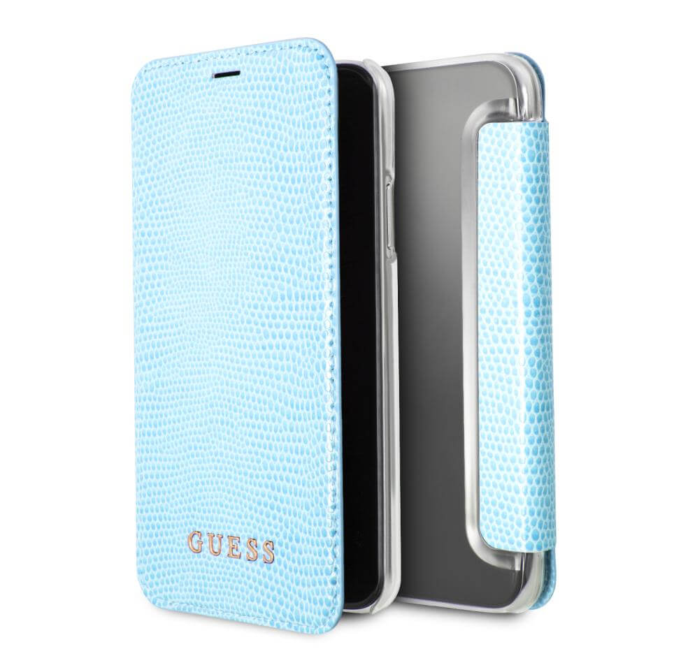 Guess Iridescent Python Book Case - дизайнерски кожен калъф, тип портфейл за iPhone XS, iPhone X (син)