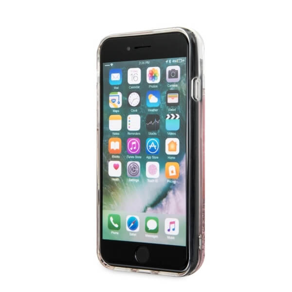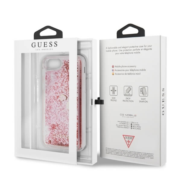 Guess Liquid Glitter Hearts Case - дизайнерски кейс с висока защита за iPhone SE (2020), iPhone 8, iPhone 7 (розово злато)