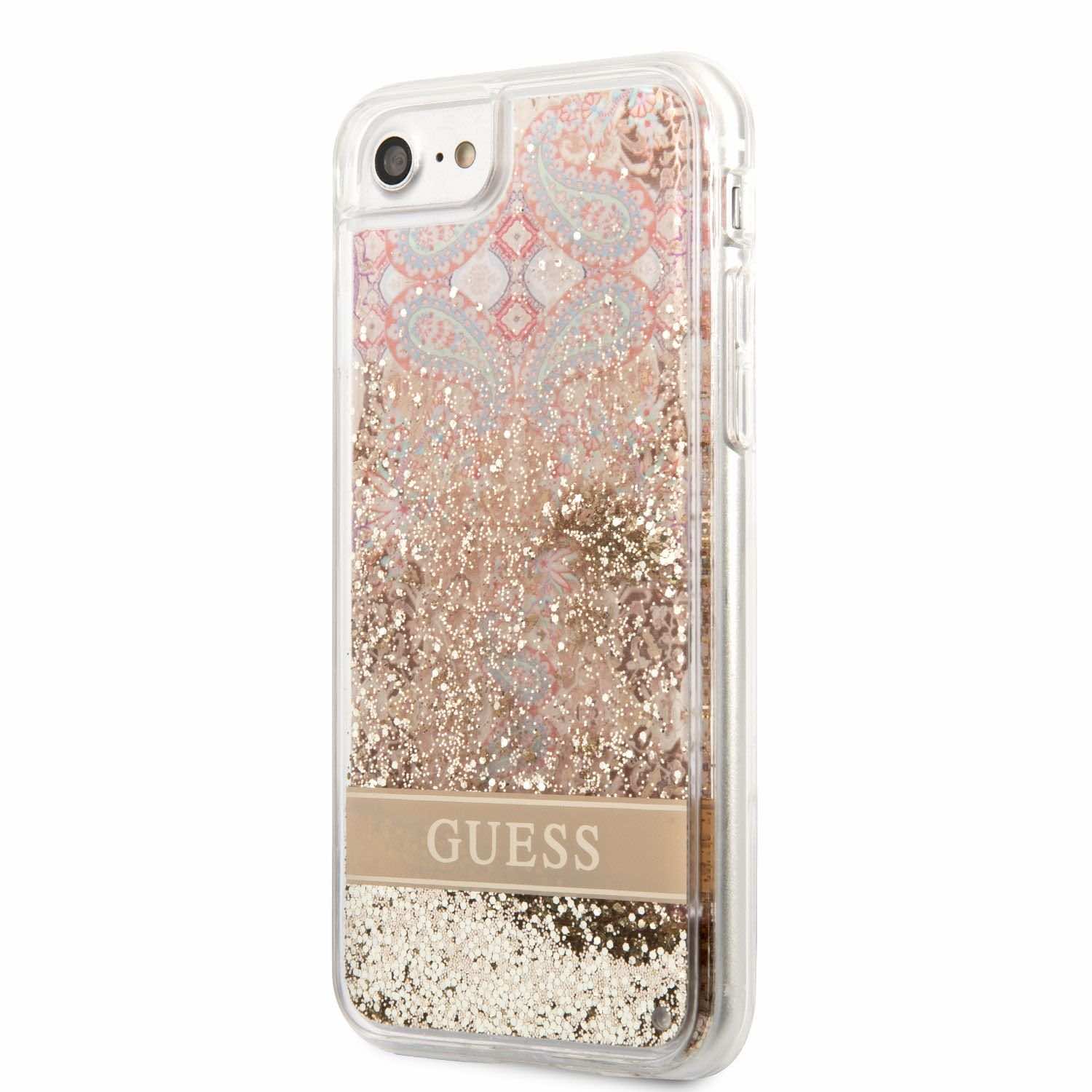 Guess Liquid Glitter Paisley Case - дизайнерски кейс с висока защита за iPhone SE (2022), iPhone SE (2020), iPhone 8, iPhone 7 (златист)