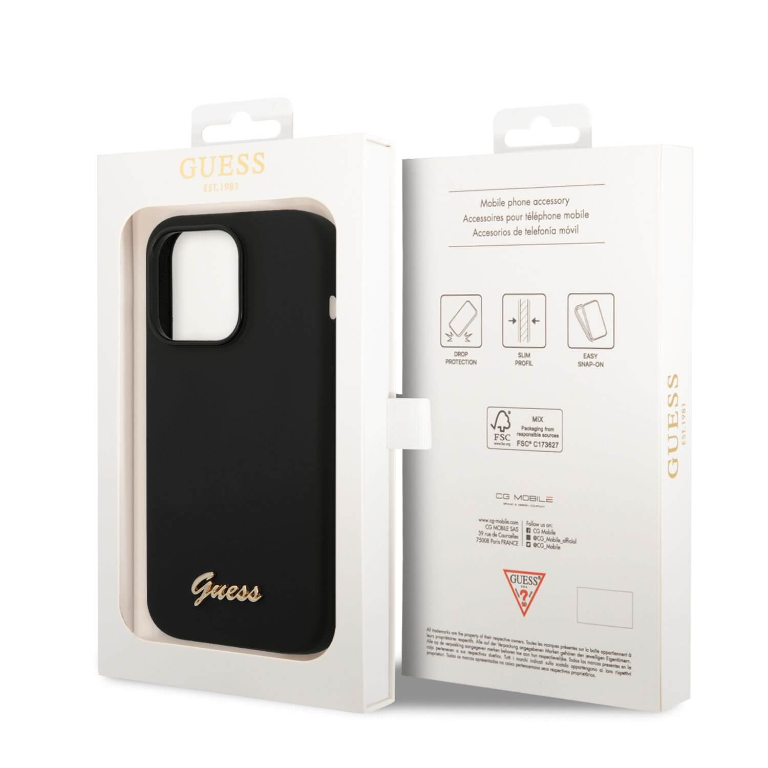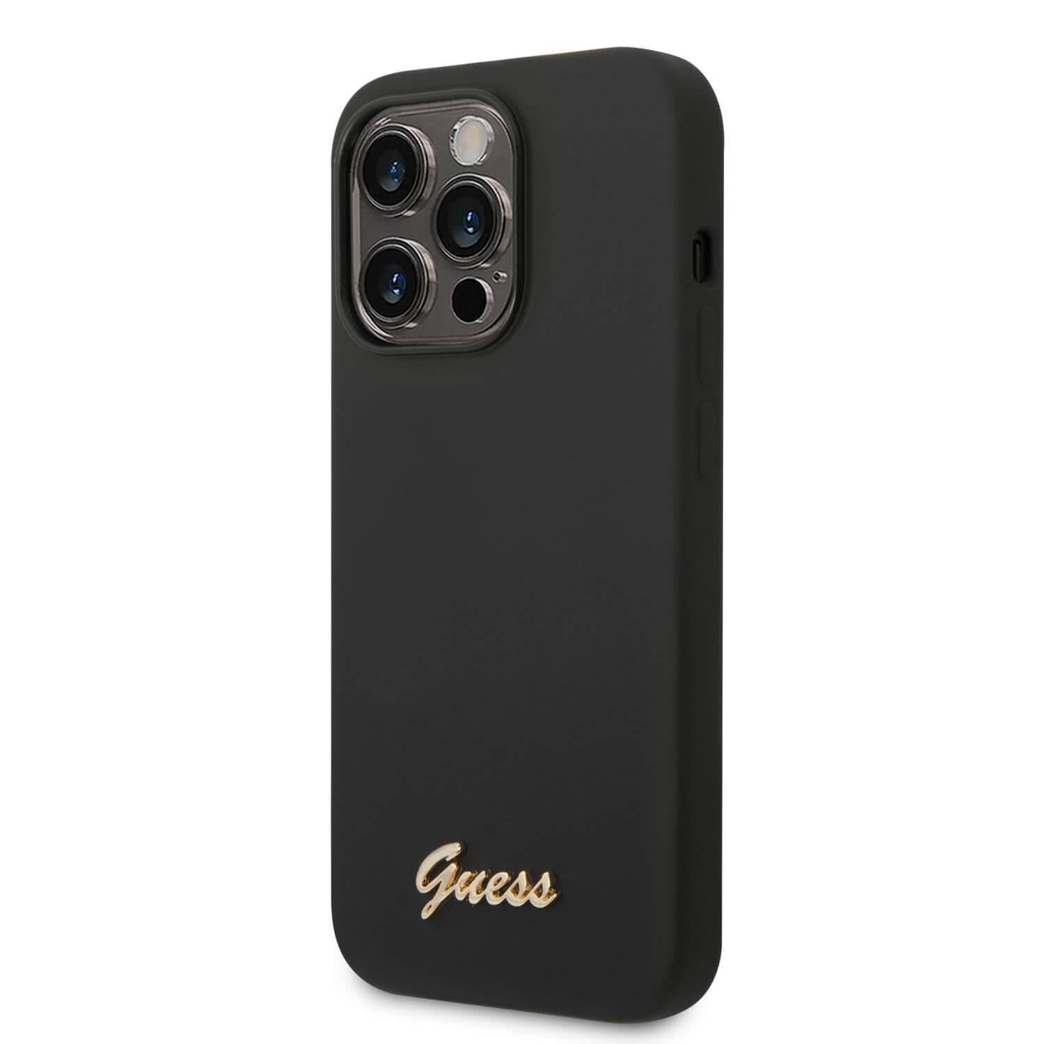 Guess Liquid Silicone Metal Logo MagSafe Case - силиконов (TPU) калъф с MagSafe за iPhone 14 Pro (черен)