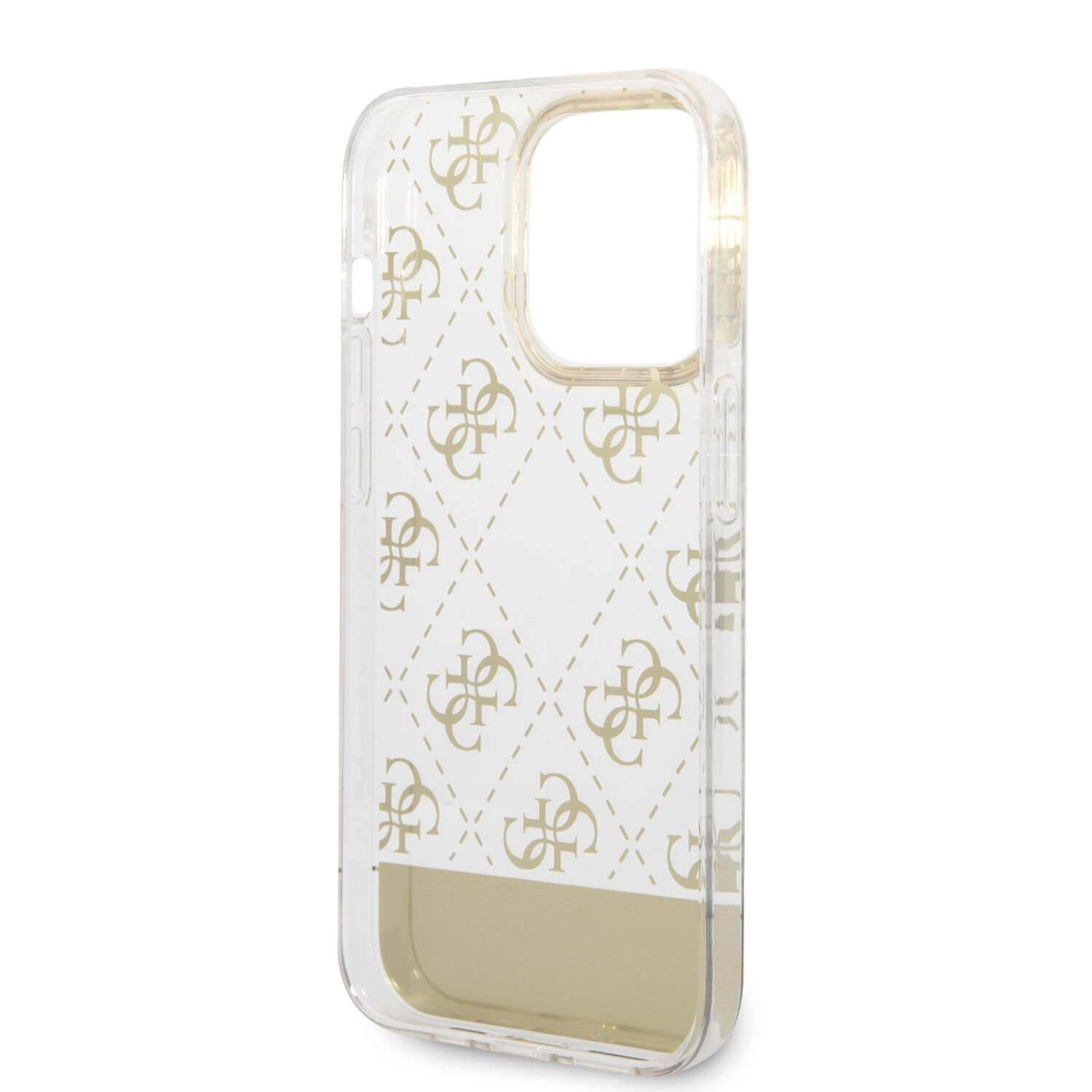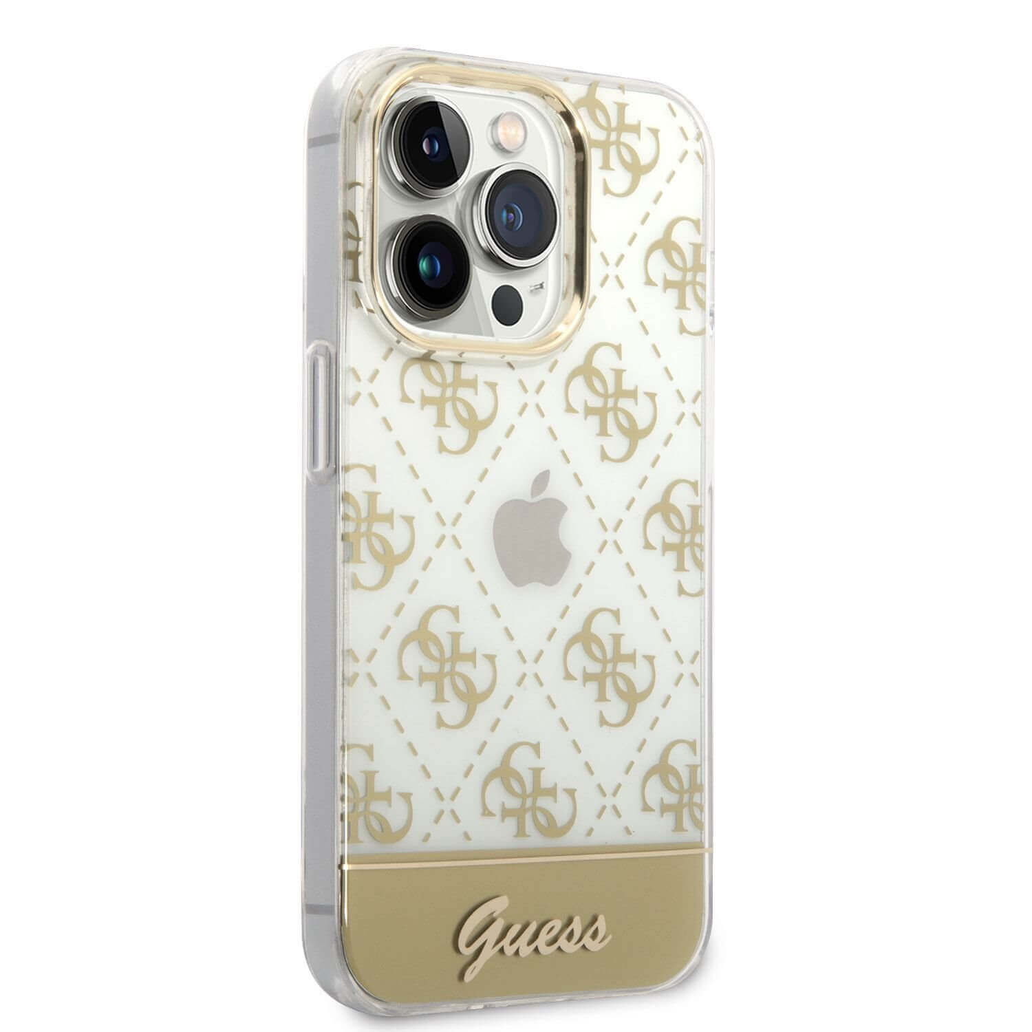 Guess Peony Glitter Script Logo Case - дизайнерски кейс с висока защита за iPhone 14 Pro Max (златист)