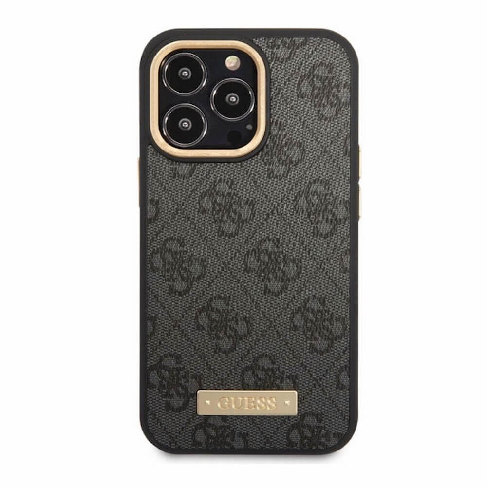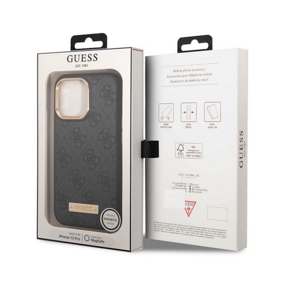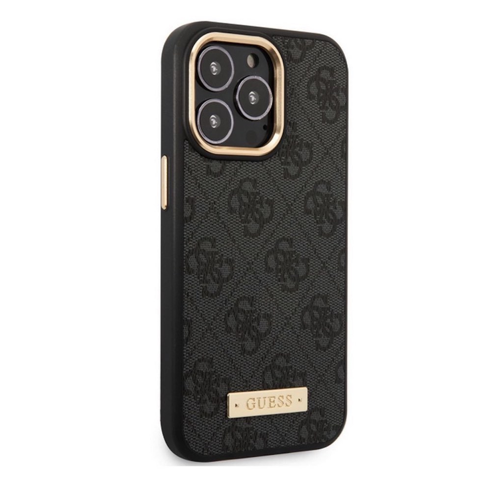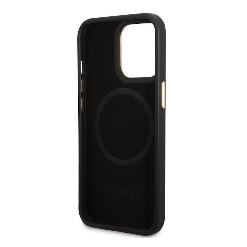 Guess PU 4G MagSafe Leather Hard Case - дизайнерски кожен кейс с MagSafe за iPhone 13 Pro Max (черен)