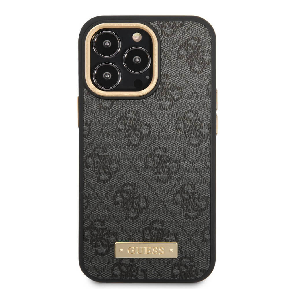 Guess PU 4G MagSafe Leather Hard Case - дизайнерски кожен кейс с MagSafe за iPhone 14 Pro Max (черен)
