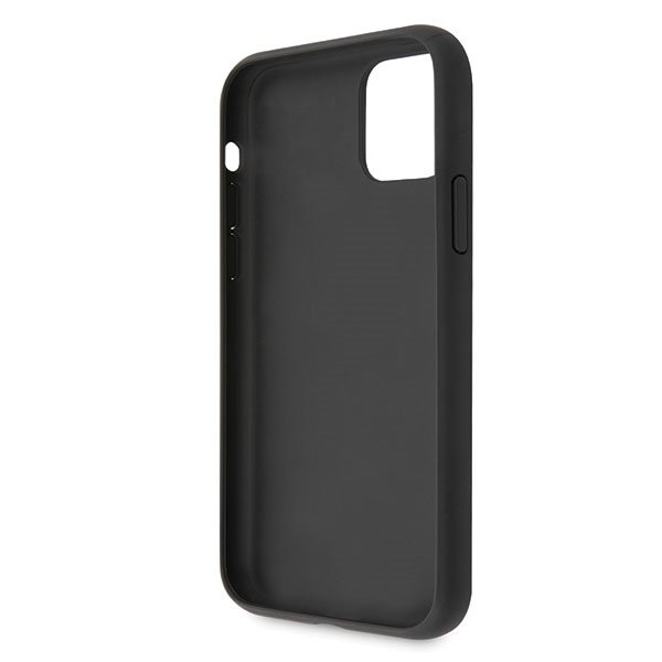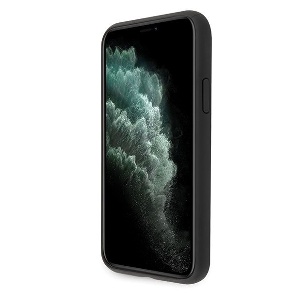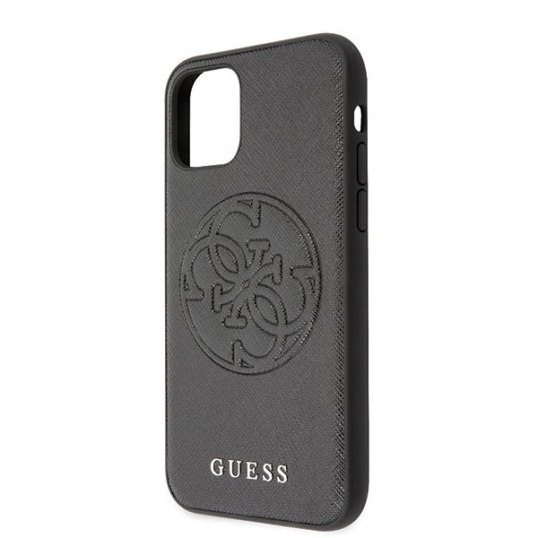 Guess Saffiano 4G Circle Logo Leather Hard Case - дизайнерски кожен кейс за iPhone 11 Pro Max (черен)