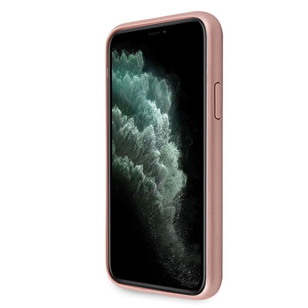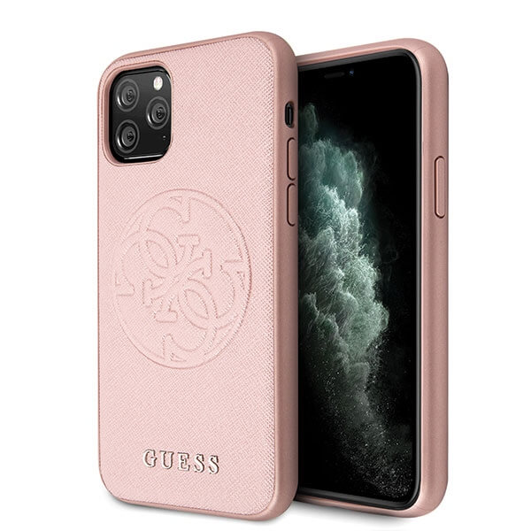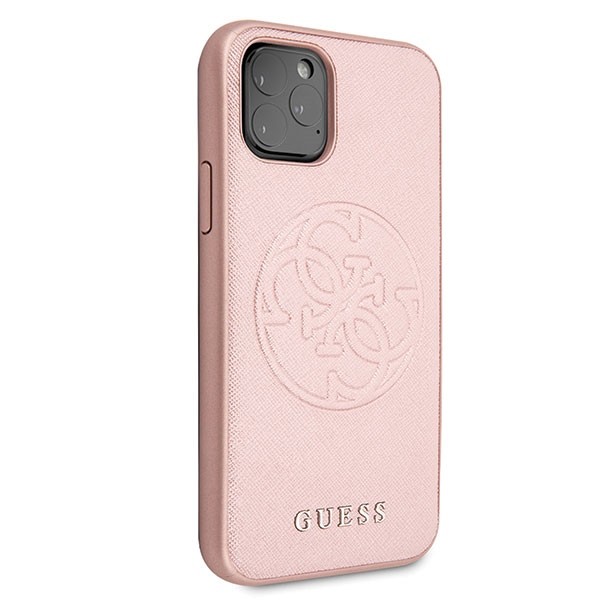 Guess Saffiano 4G Circle Logo Leather Hard Case - дизайнерски кожен кейс за iPhone 11 Pro Max (розов)