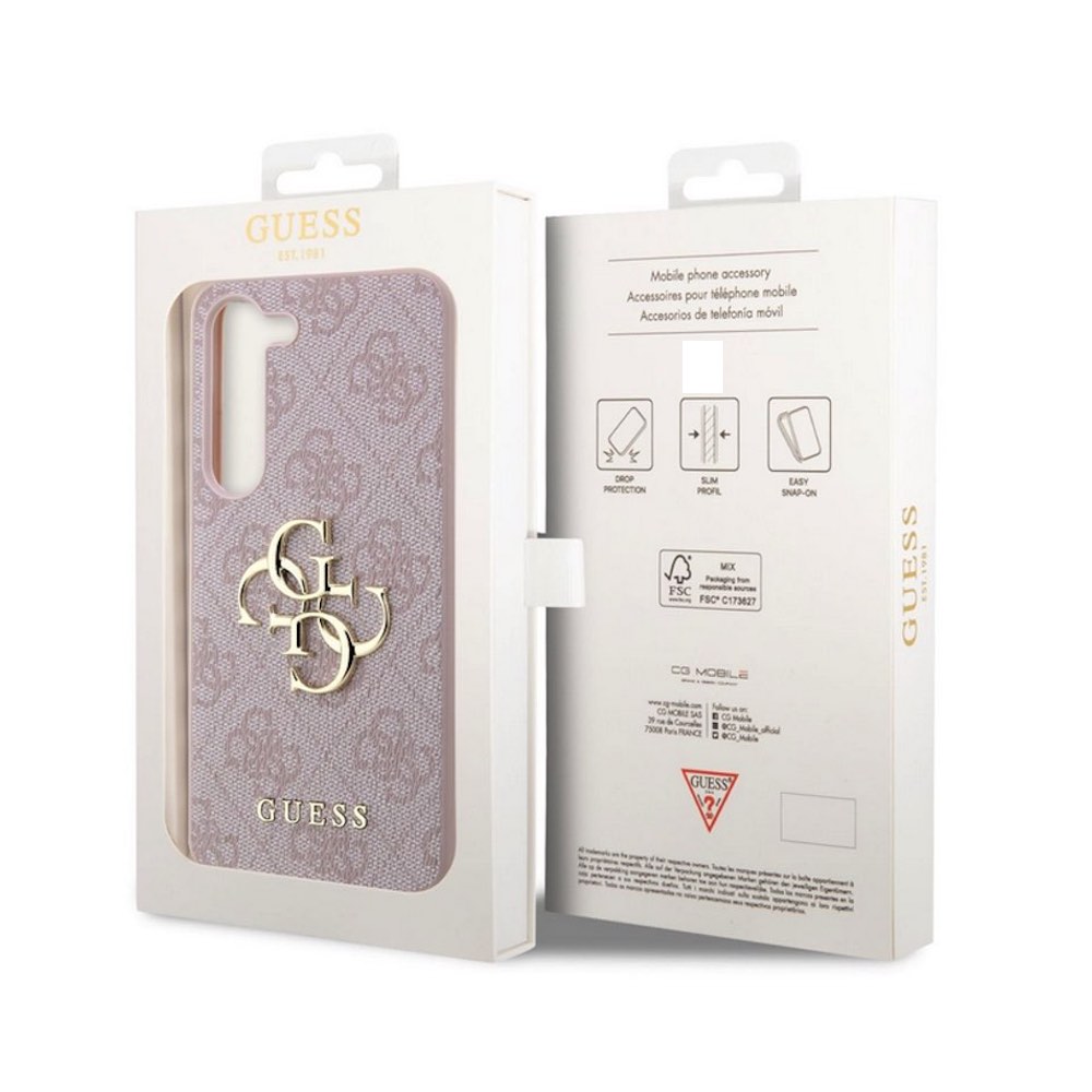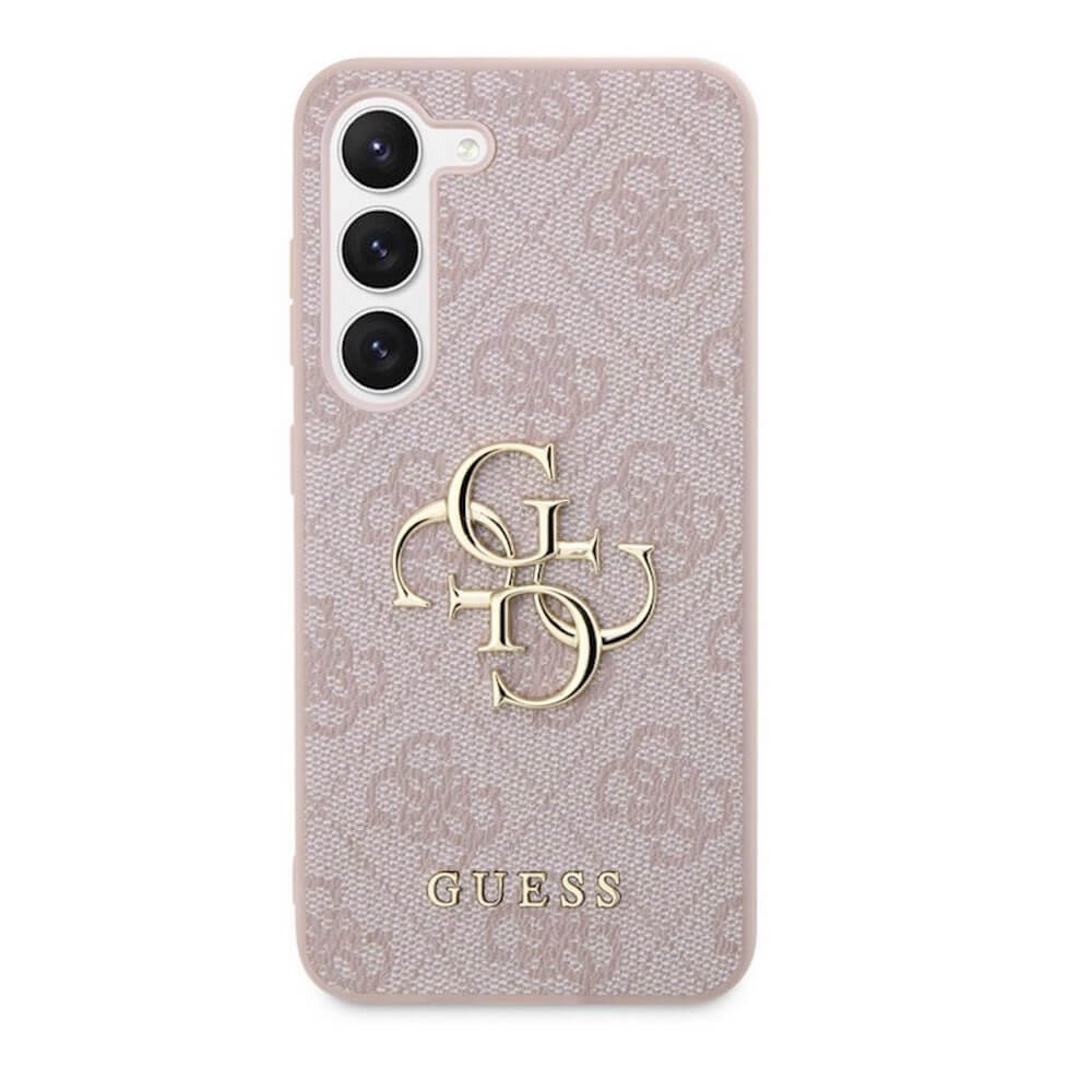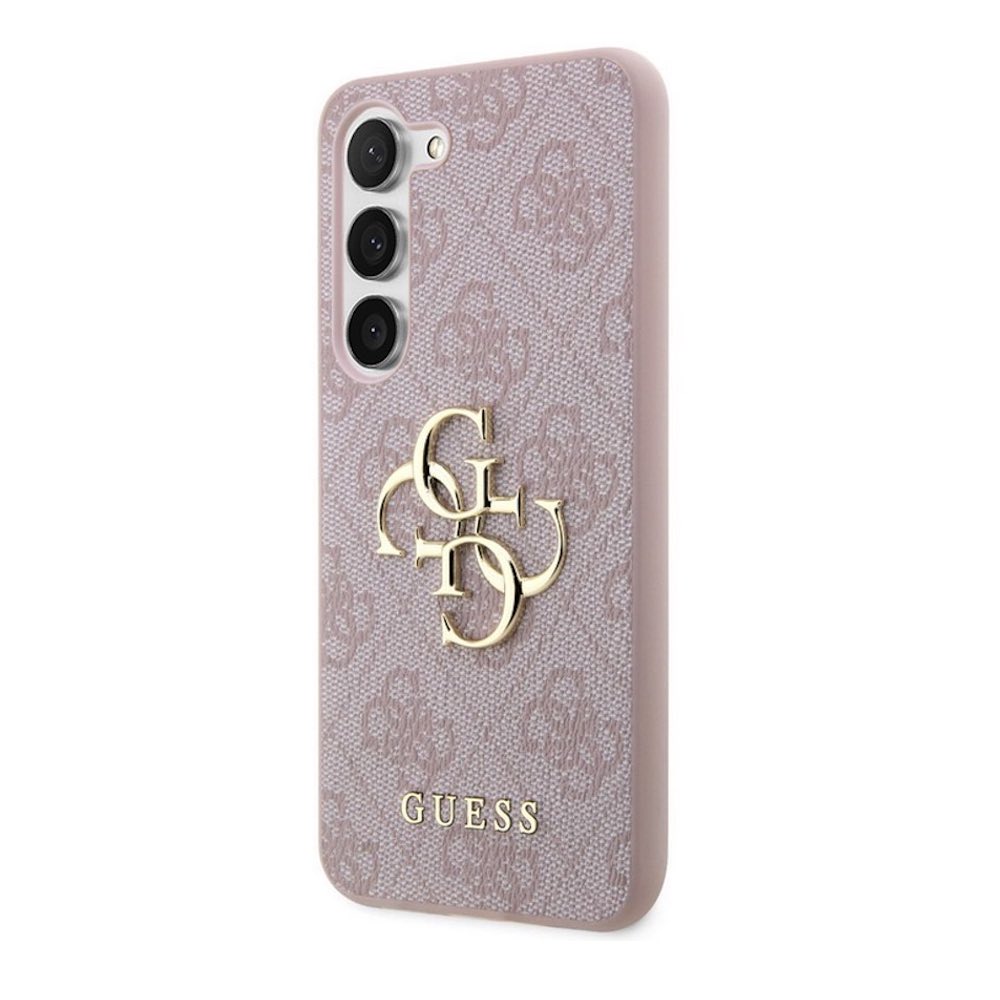 Guess Saffiano 4G Metal Logo Leather Hard Case - дизайнерски кожен кейс за Samsung Galaxy S23 Plus (розов)