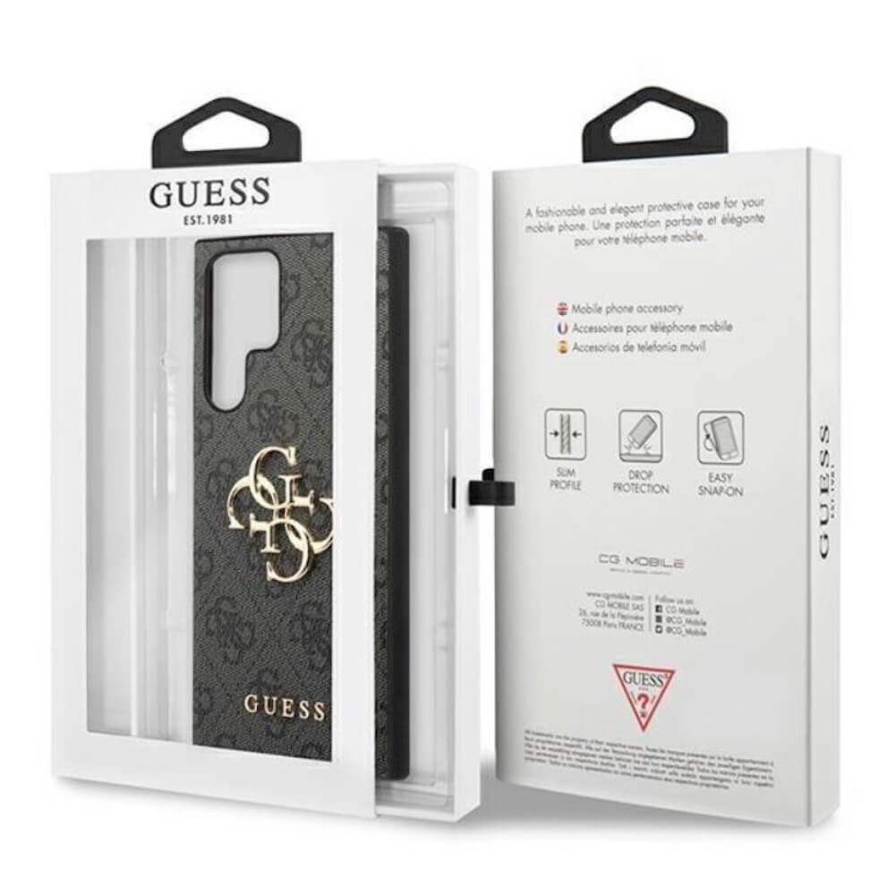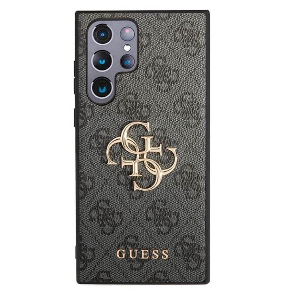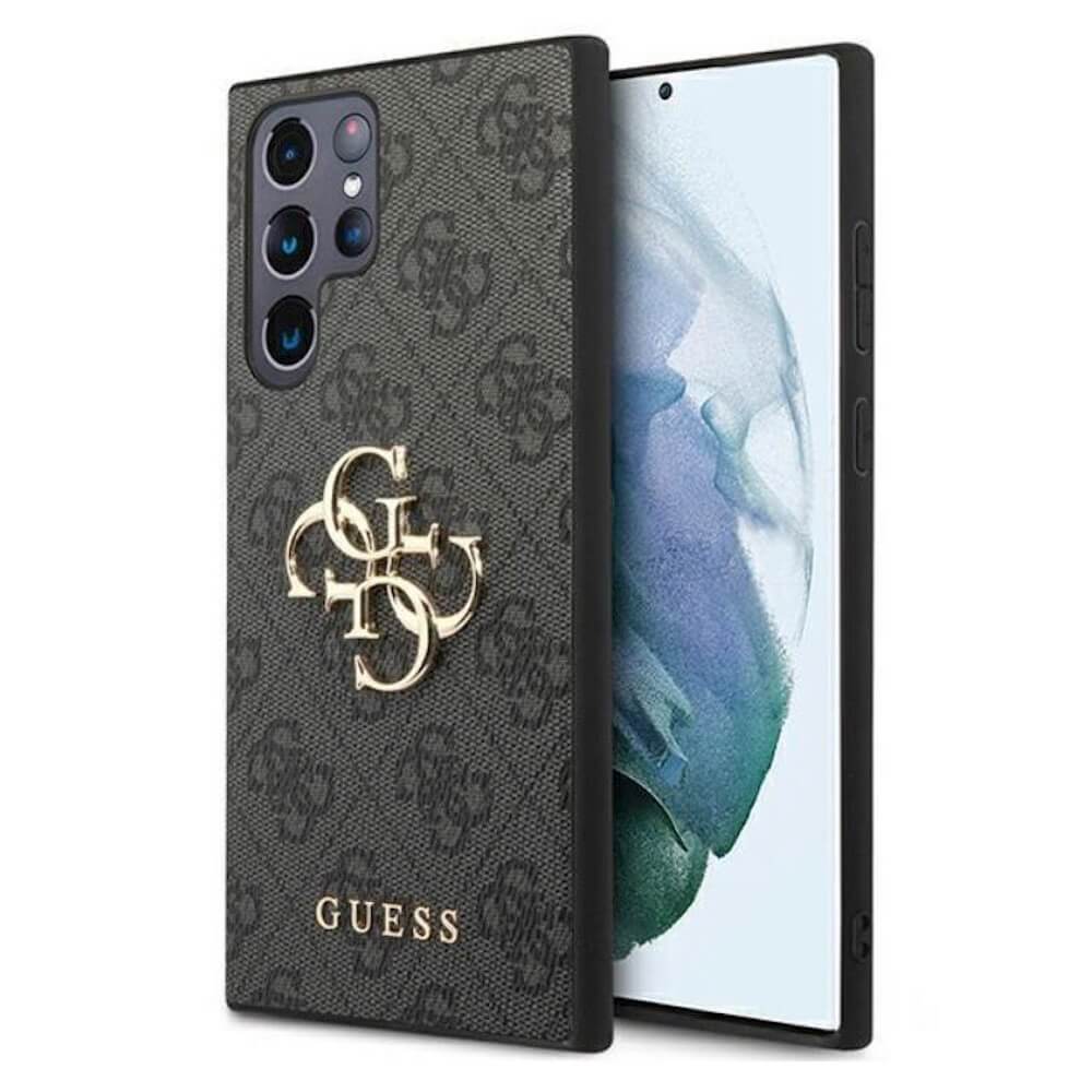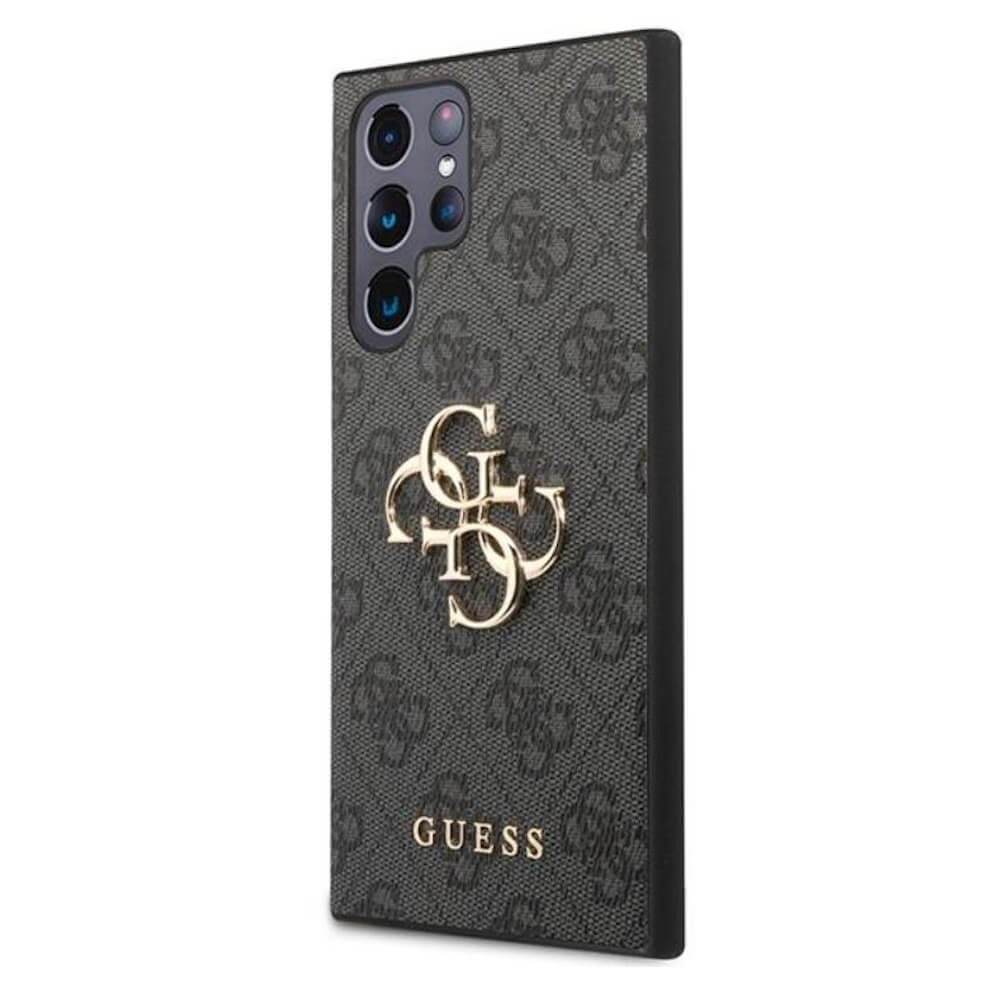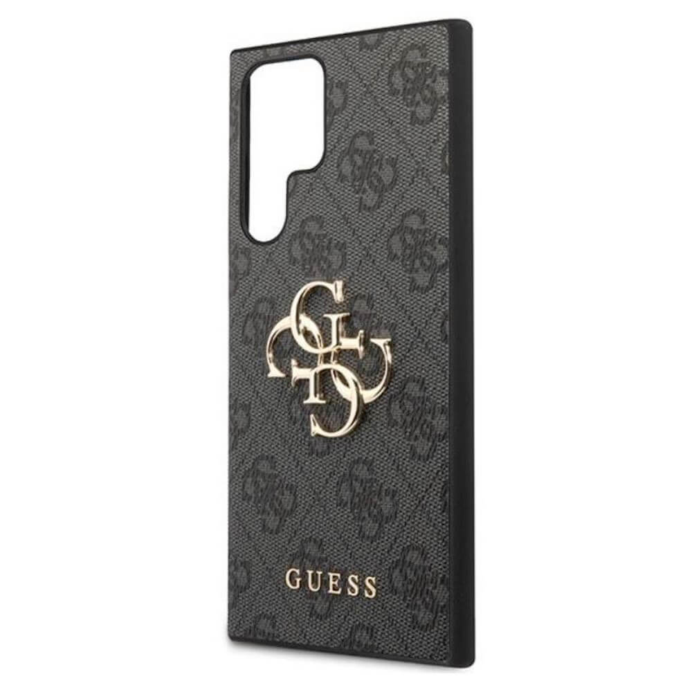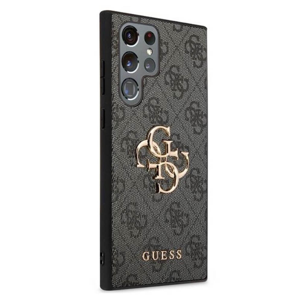 Guess Saffiano 4G Metal Logo Leather Hard Case - дизайнерски кожен кейс за Samsung Galaxy S23 Ultra (сив)