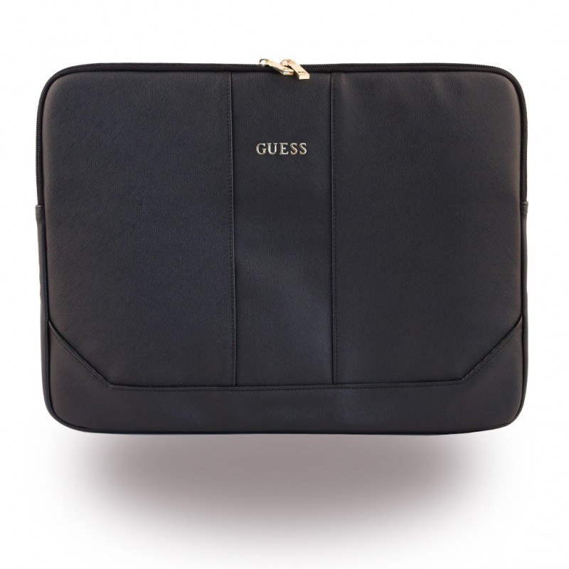 Guess Saffiano Notebook Sleeve - дизайнерски луксозен кожен калъф за преносими компютри до 15 инча (черен)