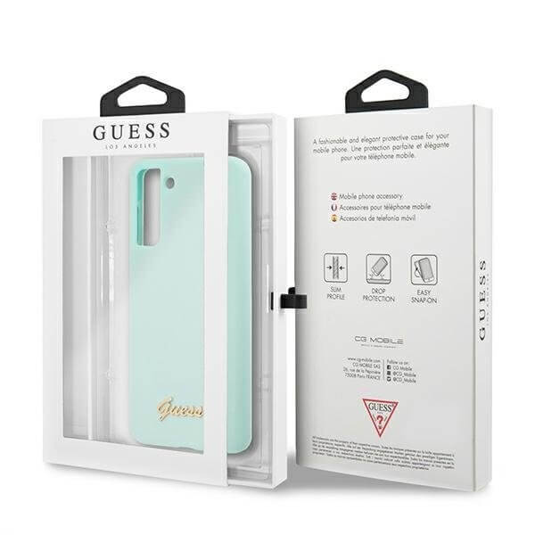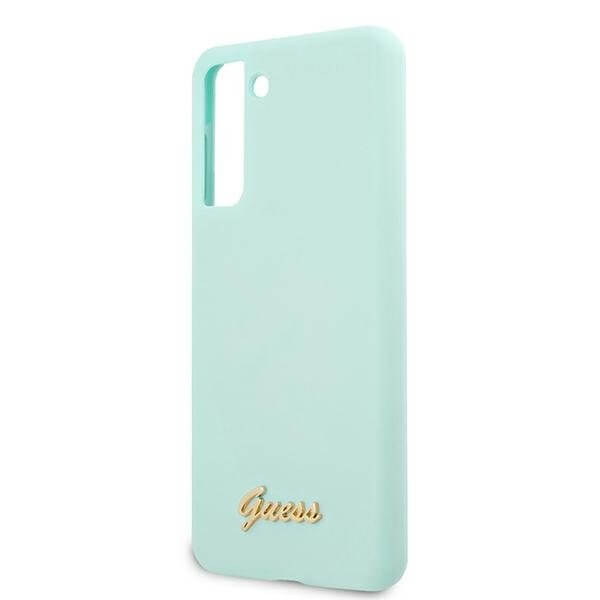 Guess Silicone Script Metal Logo Silicone Case - дизайнерски силиконов кейс за Samsung Galaxy S21 Plus (син)