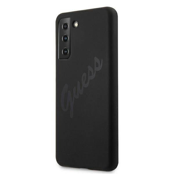 Guess Silicone Script Vintage Silicone Case - дизайнерски силиконов кейс за Samsung Galaxy S21 (черен)