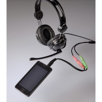 • Това устройство се използва, например ако желаете да включите слушалки от компютър (с два жака за звук и микрофон) към мобилен телефон или таблет