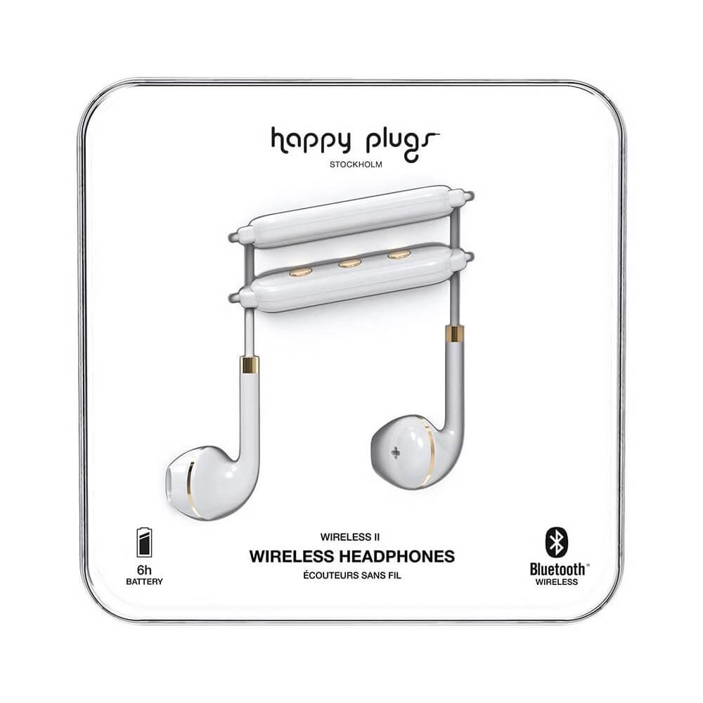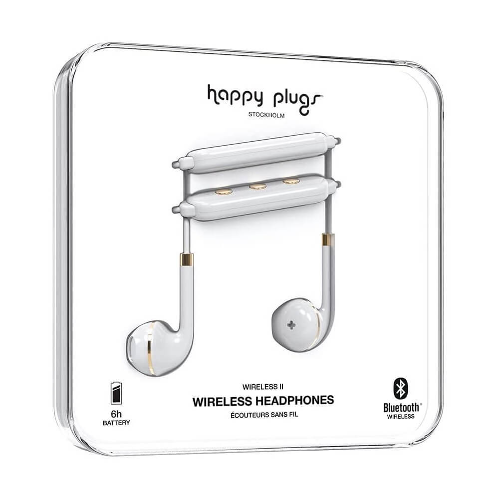 Happy Plugs Wireless II Earbuds - безжични Bluetooth слушалки с микрофон за мобилни устройства (бял)