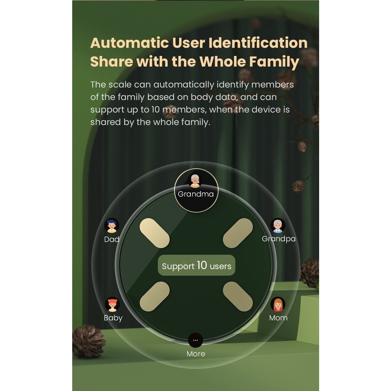 - Автоматична идентификация на потребителя - споделете теглото с цялото семейств. Кантара може автоматично да идентифицира членовете на семейството въз основа на информация за тялото и може да поддържа до 10 члена, когато устройството се използва от цялото семейство