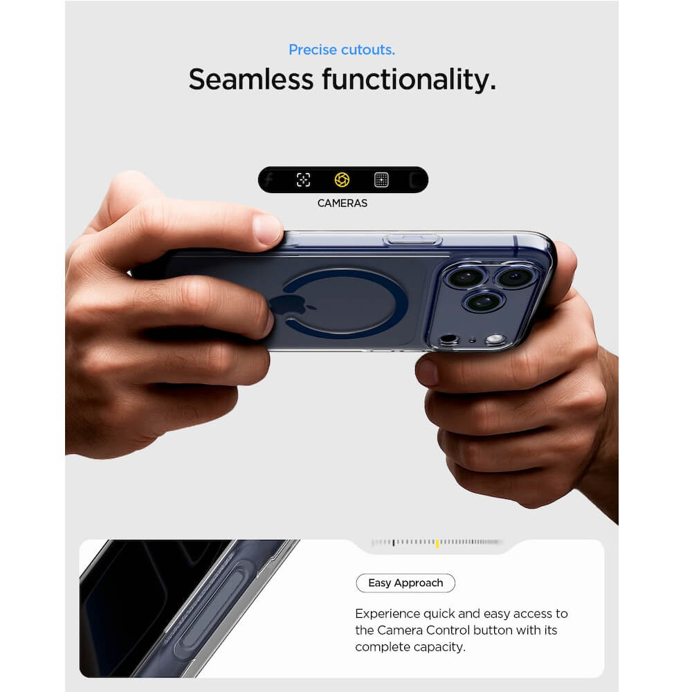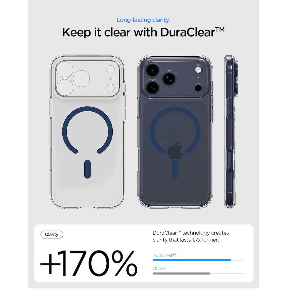 Хибриден кейс с висока степен на защита с MagSafe за iPhone 17 Pro Max - Spigen Ultra Hybrid MagSafe Case (прозрачен-тъмносин)