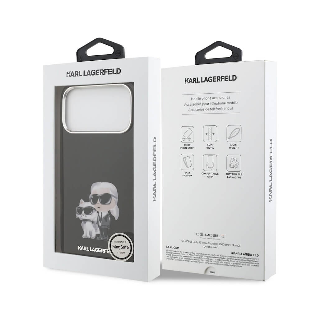 Хибриден удароустойчив кейс с MagSafe за iPhone 17 Pro - Karl Lagerfeld IML Aquarelle Karl and Choupette с MagSafe Case (черен)