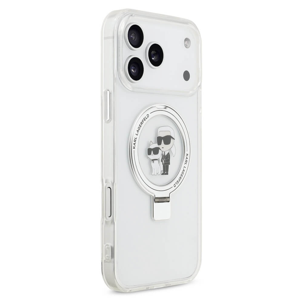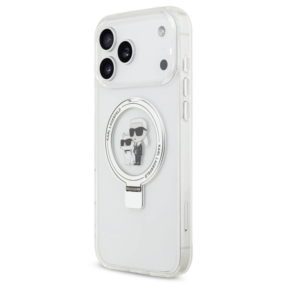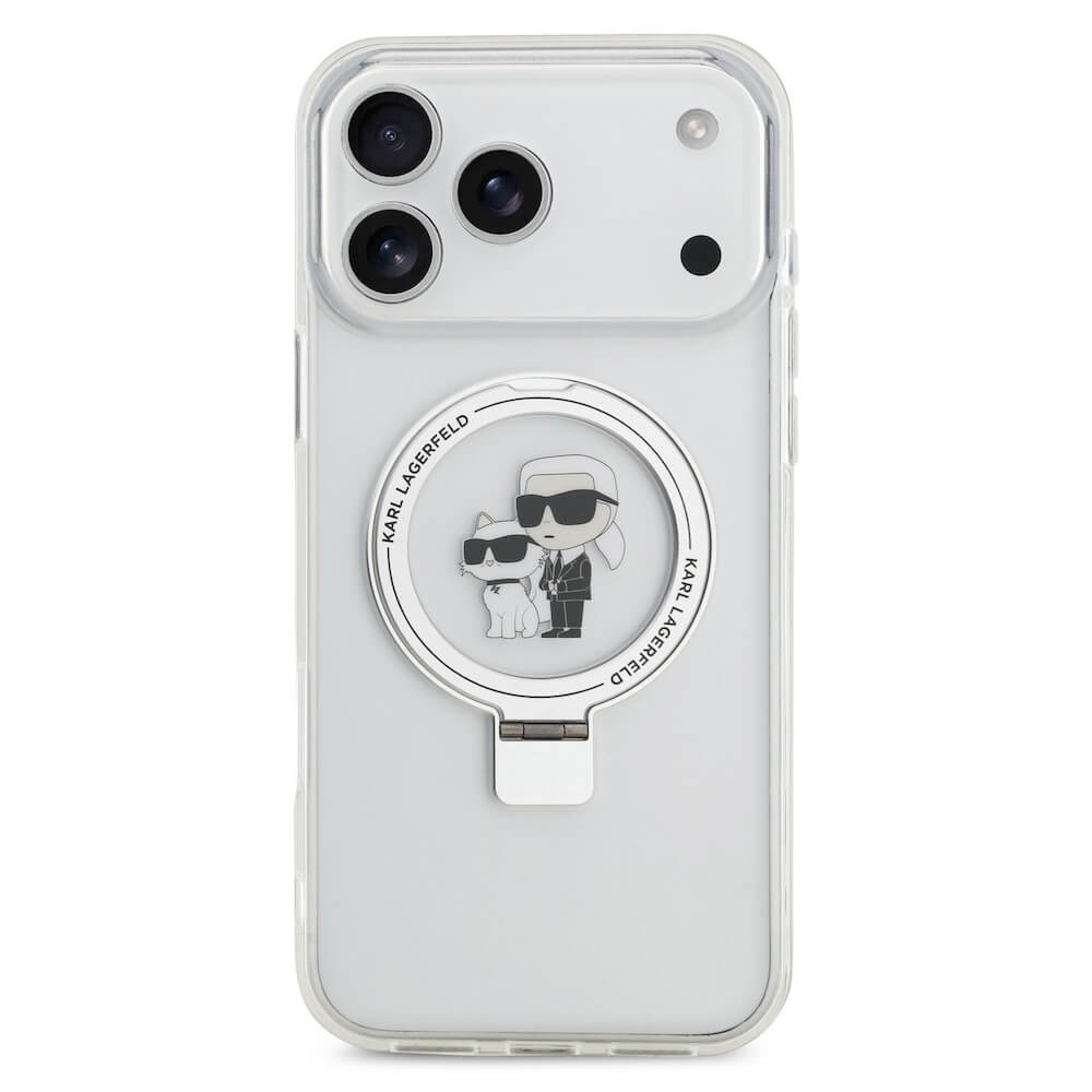 Хибриден удароустойчив кейс с MagSafe за iPhone 17 Pro Max - Karl Lagerfeld Ringstand Karl and Choupette MagSafe Case (бял-прозрачен)