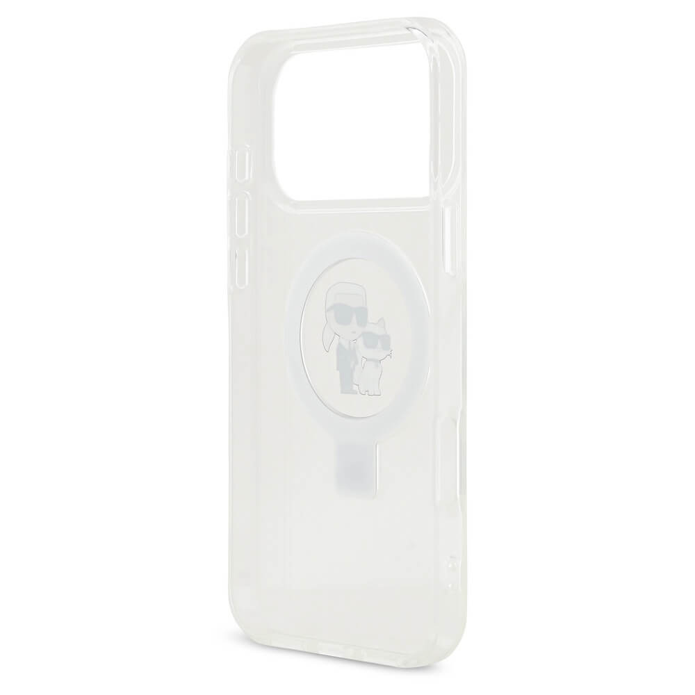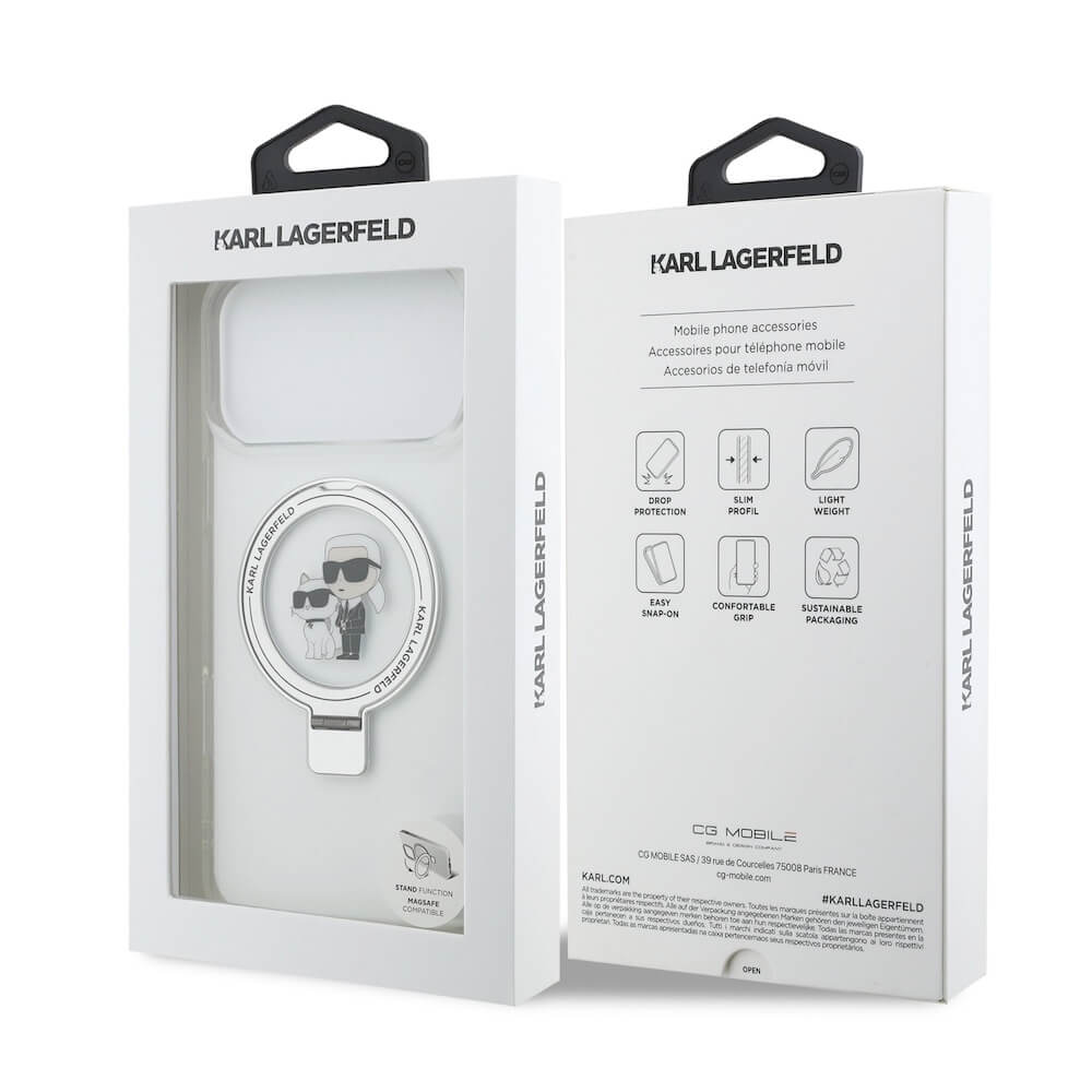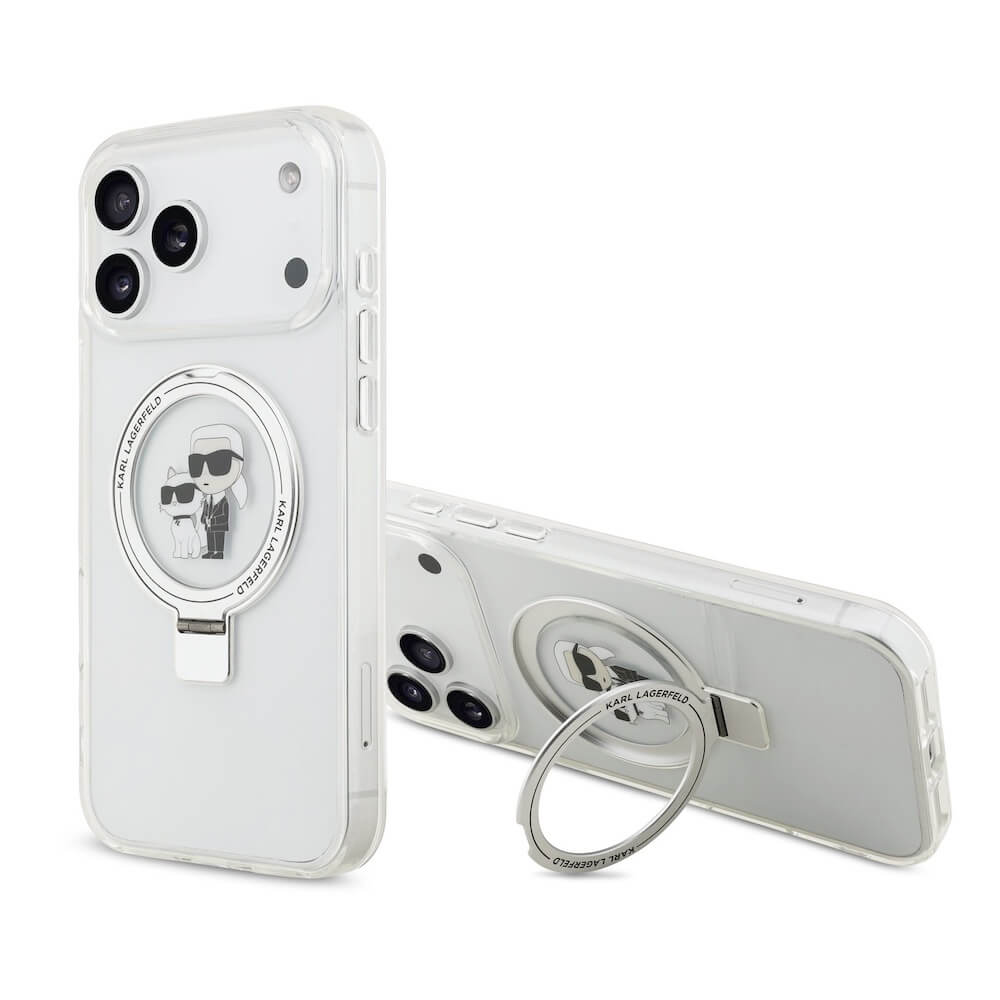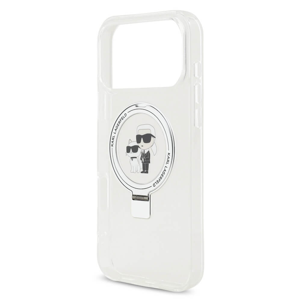 Хибриден удароустойчив кейс с MagSafe за iPhone 17 Pro Max - Karl Lagerfeld Ringstand Karl and Choupette MagSafe Case (бял-прозрачен)
