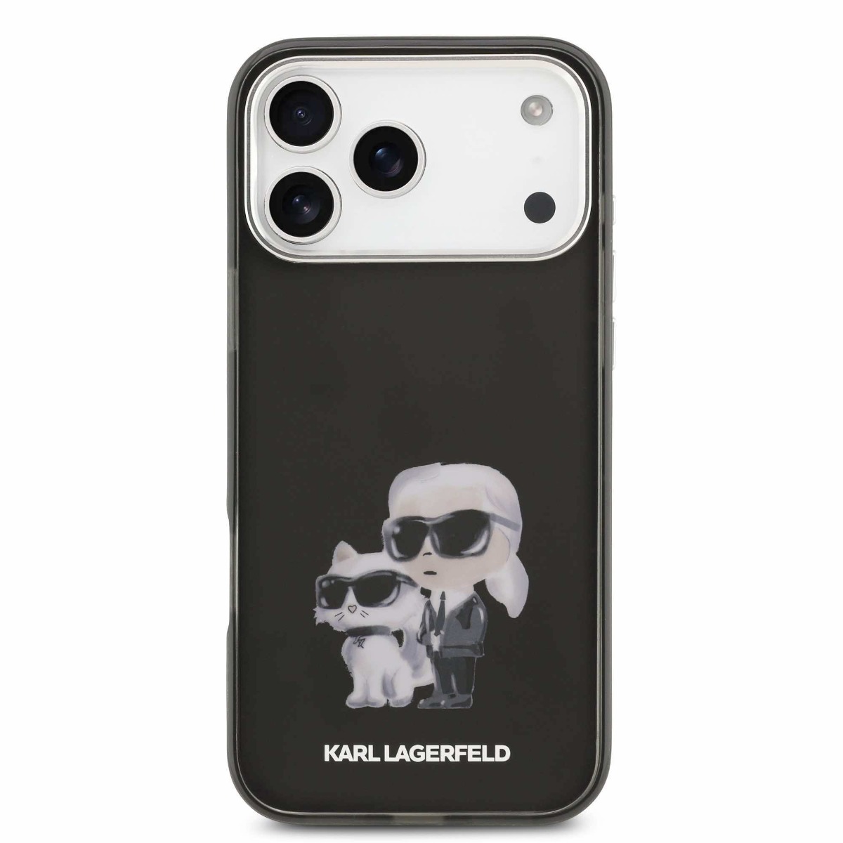 Хибриден удароустойчив кейс за iPhone 17 Pro Max - Karl Lagerfeld IML Aquarelle Karl and Choupette Case (черен)