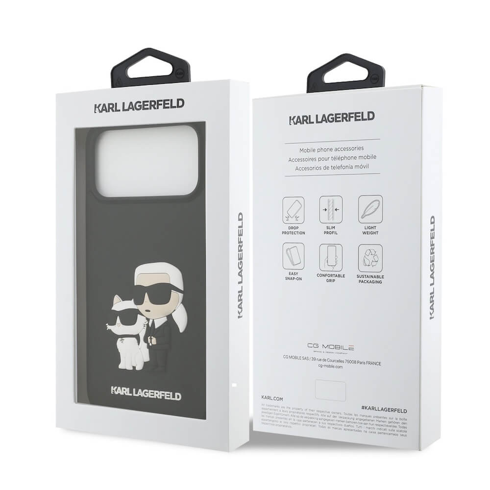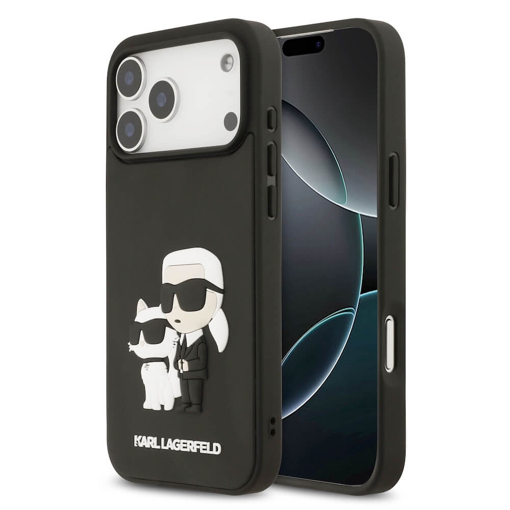 Хибриден удароустойчив кейс за iPhone 17 Pro Max - Karl Lagerfeld Karl and Choupette 3D Case (черен)