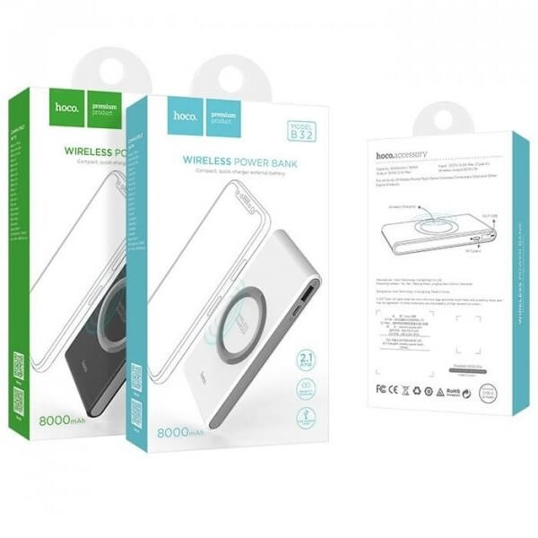 Hoco B32 Wireless Power Bank 8000mAh - външна батерия с възможност за безжично зареждане на Qi съвместими устройства и USB изход за мобилни устройства