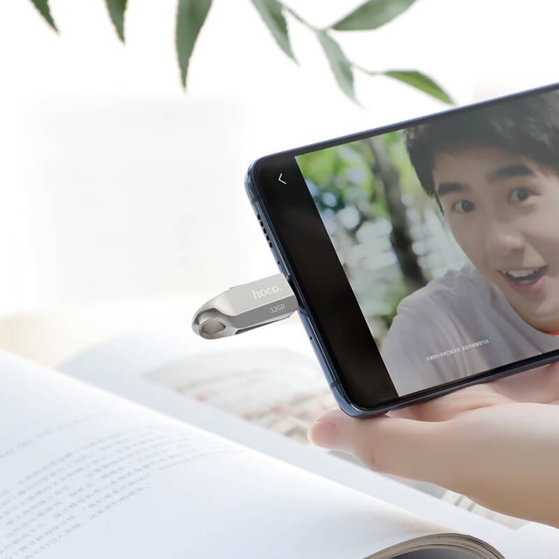 Hoco Premium 64GB USB-C Male Flash Drive + USB 3.0 Female - USB флаш памет с USB-C порт за компютри смартфони и таблети (сребрист)