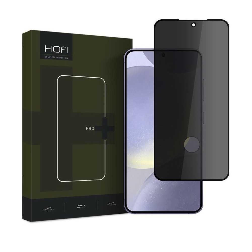 Hofi Anti-Spy Pro Plus Full Screen Tempered Glass - калено стъклено защитно покритие с определен ъгъл на виждане за дисплея на Samsung Galaxy S24 (черен-прозрачен)