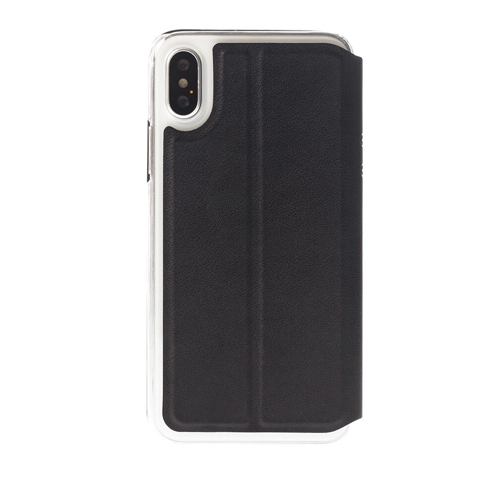 Honju DarkBook Folio Case - кожен калъф с поставка и отделение за кр. карта за iPhone XS, iPhone X (черен)