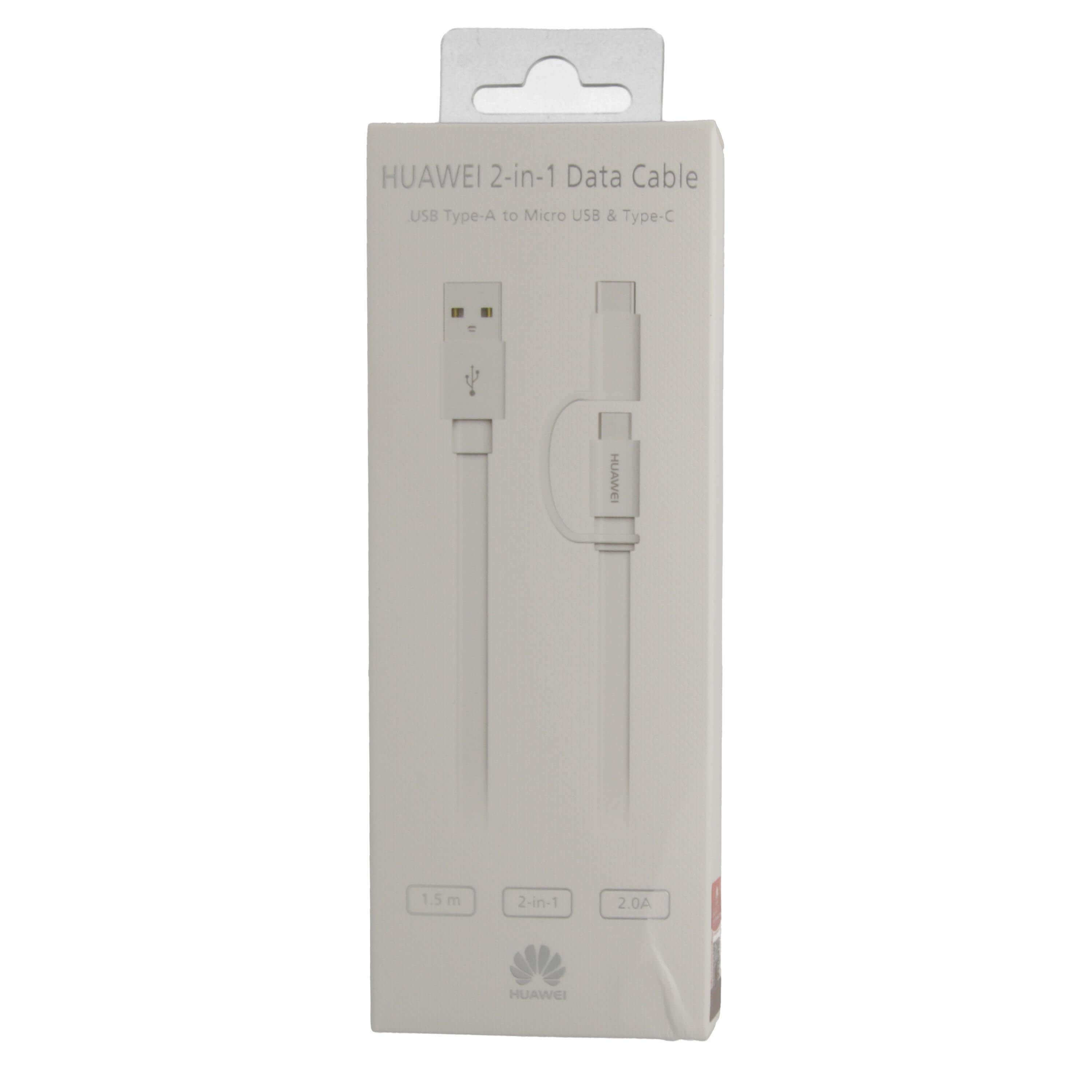 Huawei AP55S USB to MicroUSB and USB-C Data Cable - универсален кабел с MicroUSB и USB-C конектори (бял)